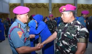 TNI AL, Dispen Kormar Ambon. Para prajurit Yonmarhanlan IX Ambon beserta Jalasenastri dan keluarga bersama-sama menyambut dengan sukacita Komandan Baru Yonmarhanlan IX, Mayor Marinir Musa Purna Toban, S.H., M.Tr.Opsla dan Ibu Ketua Ranting A Cabang 1, Ny. Ny. Etik Musa Purna Toban dengan menggelar acara tradisi pisah sambut Danyonmarhanlan IX bertempat di Mako Yonmarhanlan IX, Desa Halong, Kec. Baguala, Kota Ambon, Maluku. Selasa (30/09/2025).