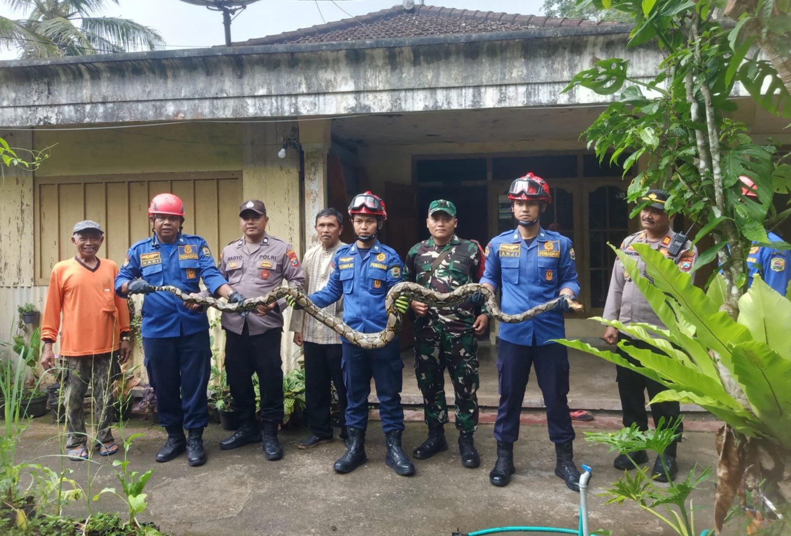 Aksi Cepat TNI–Polri dan Damkar Evakuasi Ular Piton 4 Meter di Rumah Warga Desa Puru