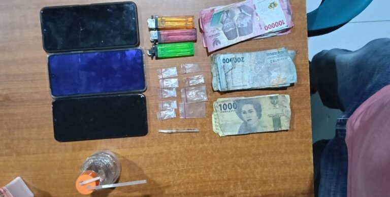 hasil penggeledahan, tim menemukan sejumlah barang bukti berupa beberapa paket kecil sabu yang disimpan dalam plastik, alat hisap (bong), kaca pirex, beberapa mancis, serta tiga unit telepon genggam yang diduga digunakan untuk bertransaksi. Selain itu, turut diamankan uang tunai sebesar Rp. 623.000 yang diduga hasil penjualan narkoba. Seluruh barang bukti dan tersangka kemudian dibawa ke Kantor Unit Intel Kodim 0209/Labuhanbatu untuk pemeriksaan lebih lanjut.