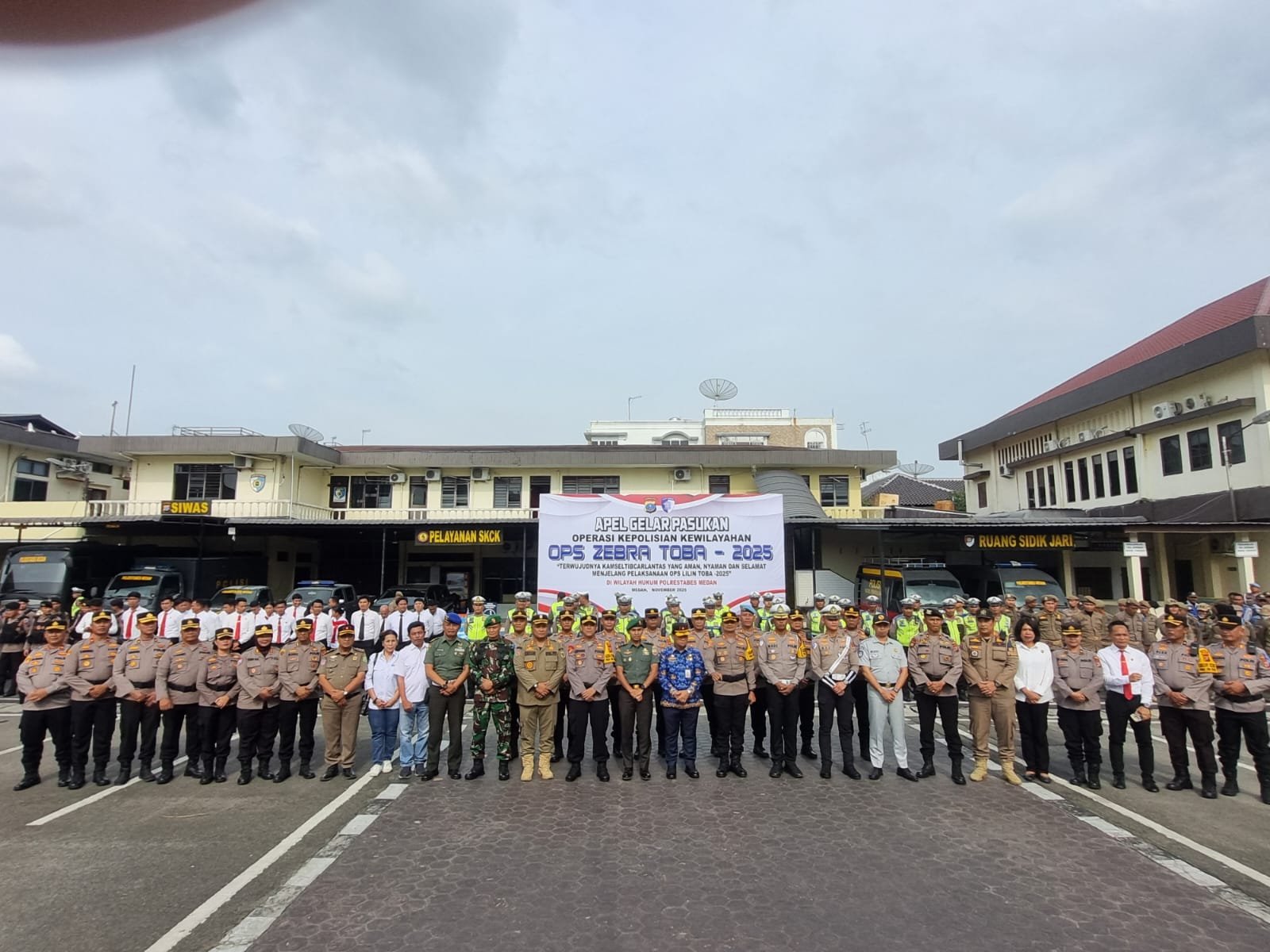 Medan – Kegiatan apel gelar pasukan Operasi “Zebra Toba” TA 2025 secara resmi dilaksanakan di Mapolrestabes Medan pada Senin, 17 November 2025. Danramil 0201-02/MT Kapten Inf Sugino bersama personel Kodim 0201/Medan turut hadir mengikuti jalannya apel sebagai bentuk dukungan terhadap pelaksanaan operasi keselamatan berlalu lintas di wilayah Kota Medan. Apel dimulai pukul 15.00 WIB dan berlangsung hingga selesai dalam suasana tertib.