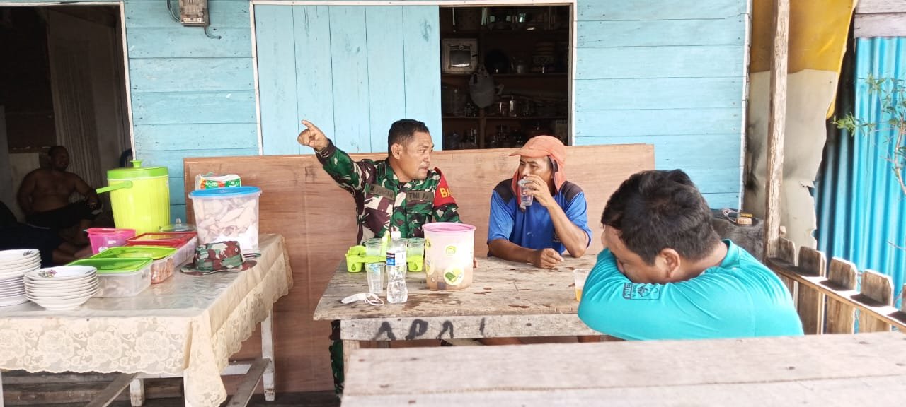 Babinsa Desa Kampung Hilir, Peltu M. Hasanuddin, melaksanakan kegiatan komunikasi sosial (komsos) dengan warga binaan Desa Kampung Hilir, bapak Dino dan bapak Takim, Selasa (28/10/2025)