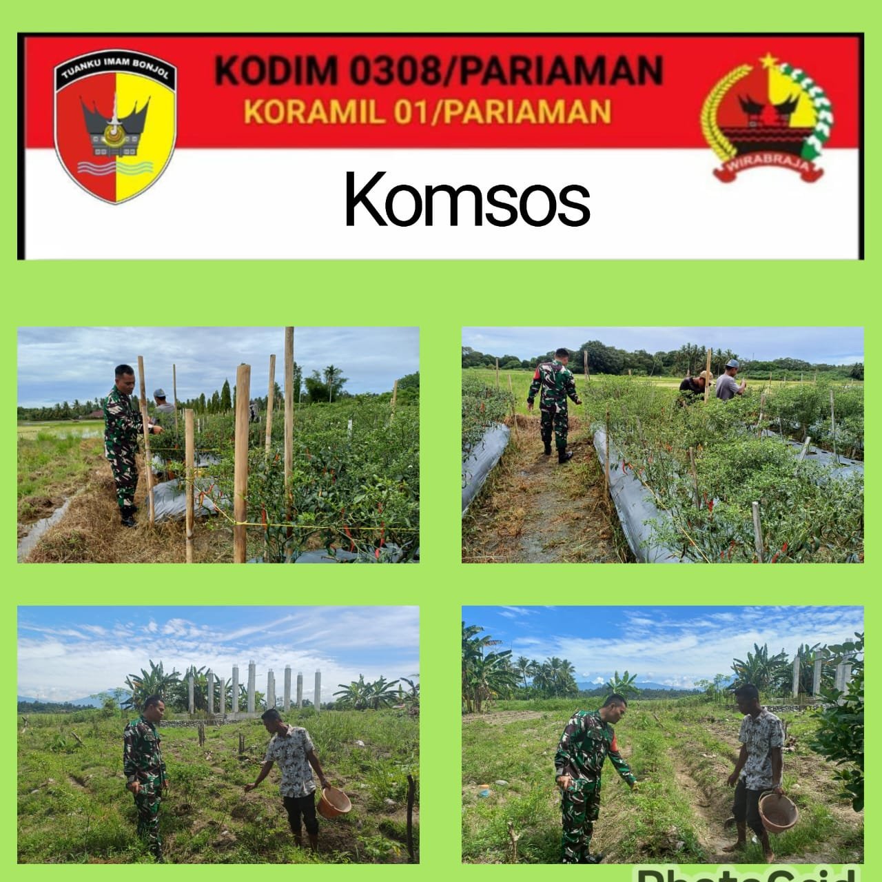 Komsos dilakukan secara bersama sama sejak mulai pembibitan, masa penanaman, dan pada saat petani melaksanakan pemanenan. Demikian juga untuk mempererat tali silaturahmi dan kerja sama yang baik dalam rangka mendukung tugas pokok Babinsa serta terwujudnya Kemanunggalan TNI-Rakyat.