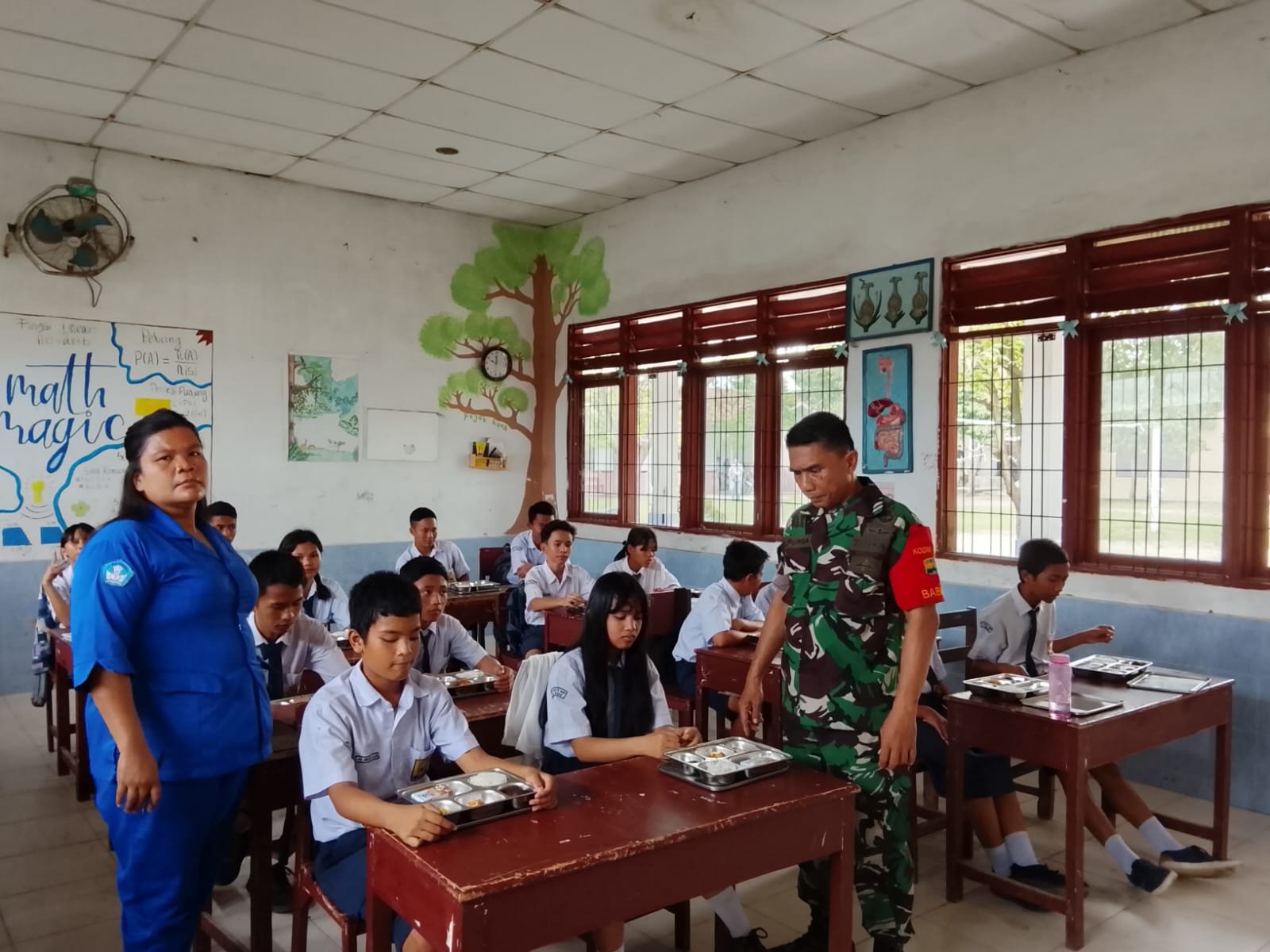 Kegiatan ini turut melibatkan Kepala SPPG, Babinsa Koramil 0201-02/MT, anggota SPPG, serta para guru sekolah yang bersama-sama memastikan distribusi berjalan lancar dan tepat sasaran. Dukungan dari aparat teritorial menjadi bentuk sinergi nyata antara TNI dengan instansi pemerintah dan lembaga sosial dalam mendorong pola hidup sehat di kalangan pelajar.