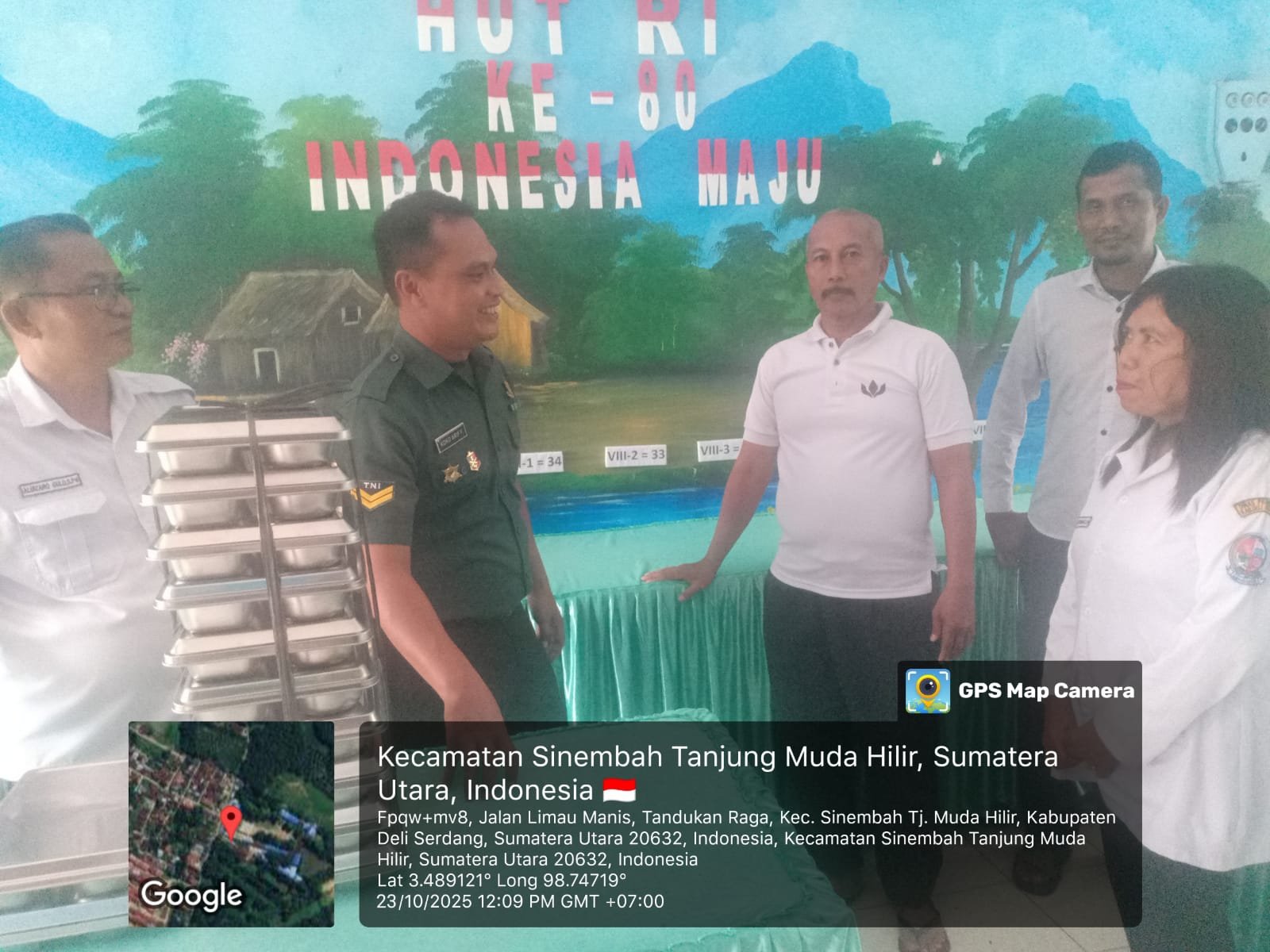 Tanjung Morawa – Babinsa Koramil 0201-16/TM, Sertu Koko Arif, melaksanakan pendampingan dalam kegiatan pendistribusian dukungan Makan Sehat Bergizi (MSB) dari Badan Gizi Nasional (BGN) yang disalurkan oleh SPPG Yayasan Nurul Qomar di Desa Medan Senembah, Kecamatan Tanjung Morawa, Kabupaten Deli Serdang, Kamis (23/10/2025).