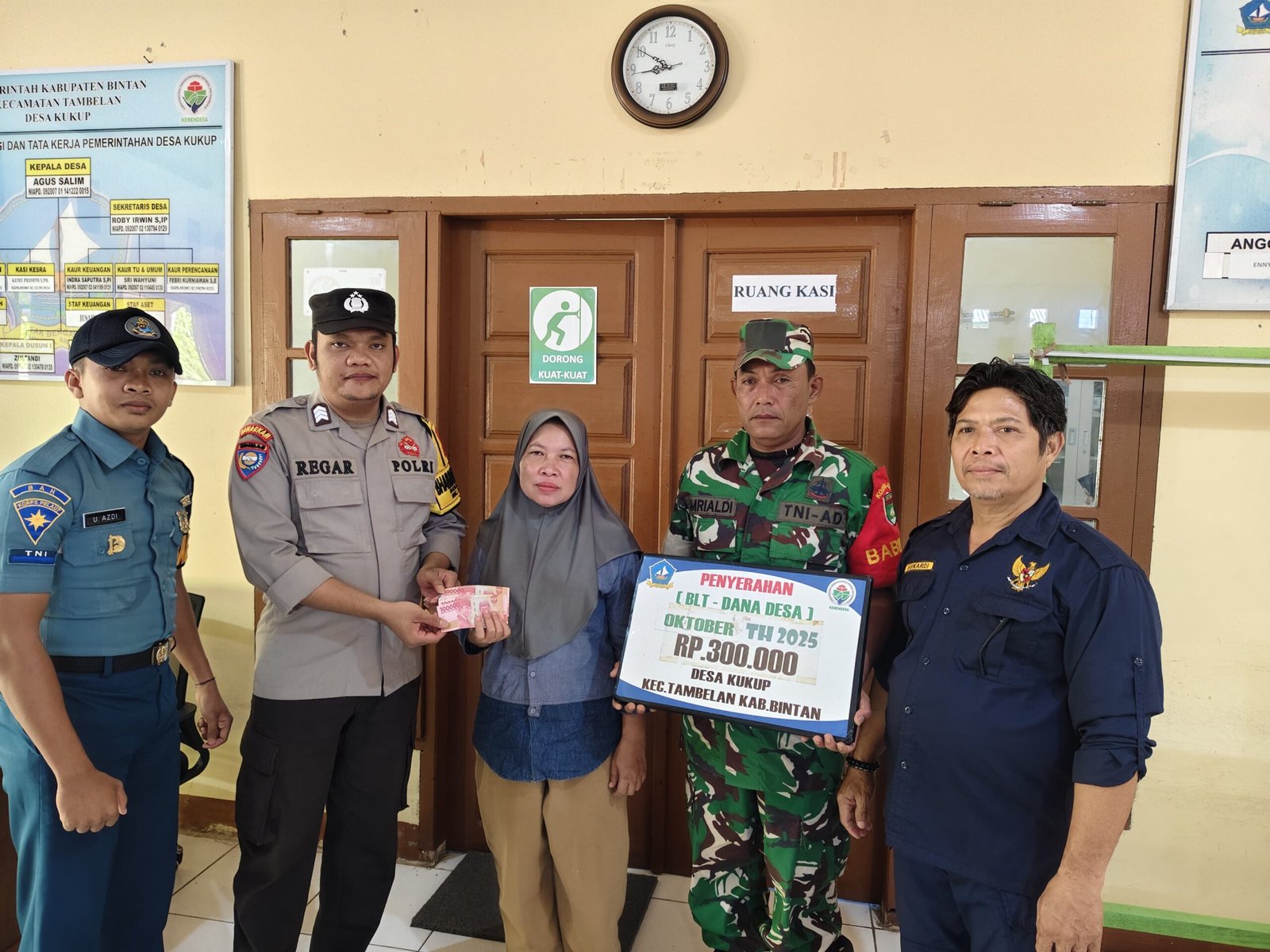 Serma Amrialdi, Babinsa Koramil 07/Tambelan, menghadiri kegiatan pembagian Bantuan Langsung Tunai (BLT) di kantor Desa Kukup, Kecamatan Tambelan. Dana BLT yang dibagikan adalah dana BLT DD bulan Oktober 2025 kepada 17 Keluarga Penerima Manfaat (KPM).