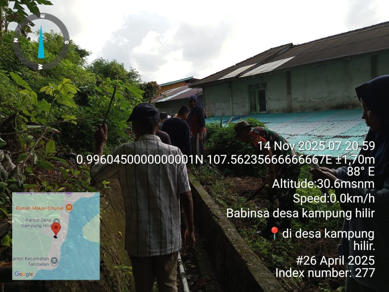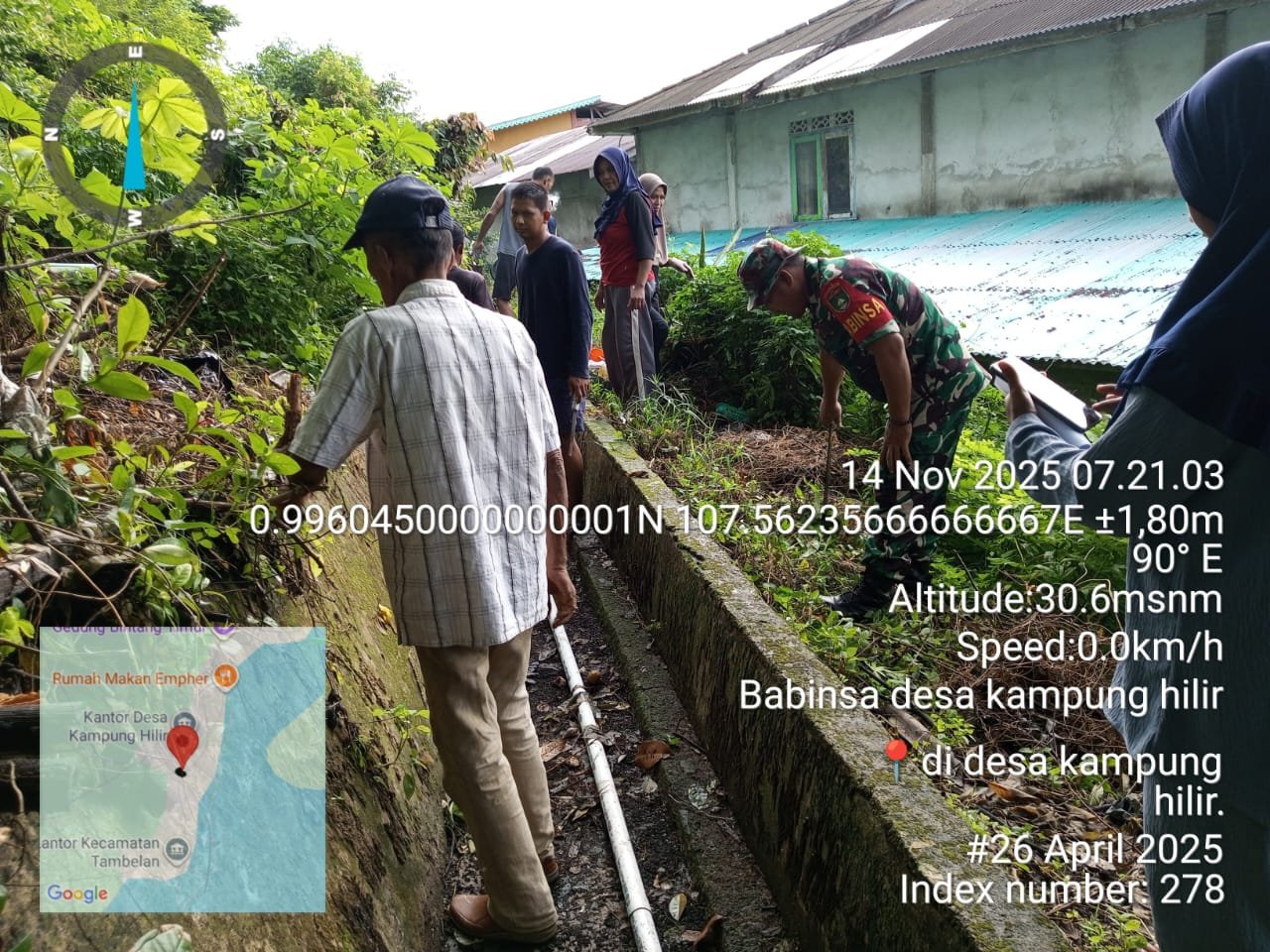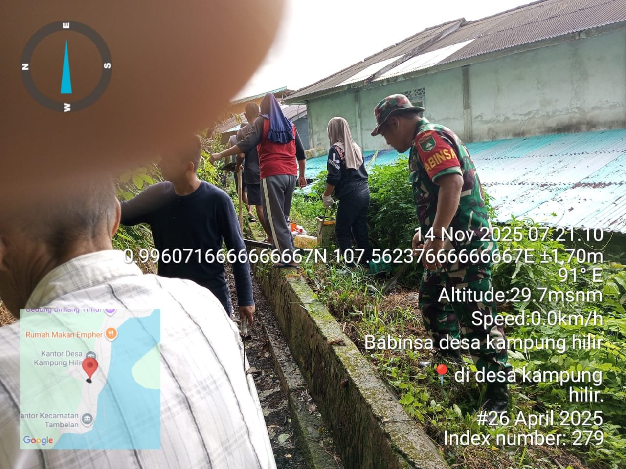 Tambelan – Babinsa Koramil 07/Tambelan Peltu M. Hasanuddin gerakkan masyarakat untuk rutin melaksanakan Gotong Royong (Goro), membersihkan lingkungan dan parit. Kegiatan ini bertujuan untuk mengantisipasi banjir mengingat sudah masuk musim penghujan serta mencegah agar bibit-bibit penyakit malaria tidak berkembang di Desa Kampung Hilir, Jum’at (14/11/2025)