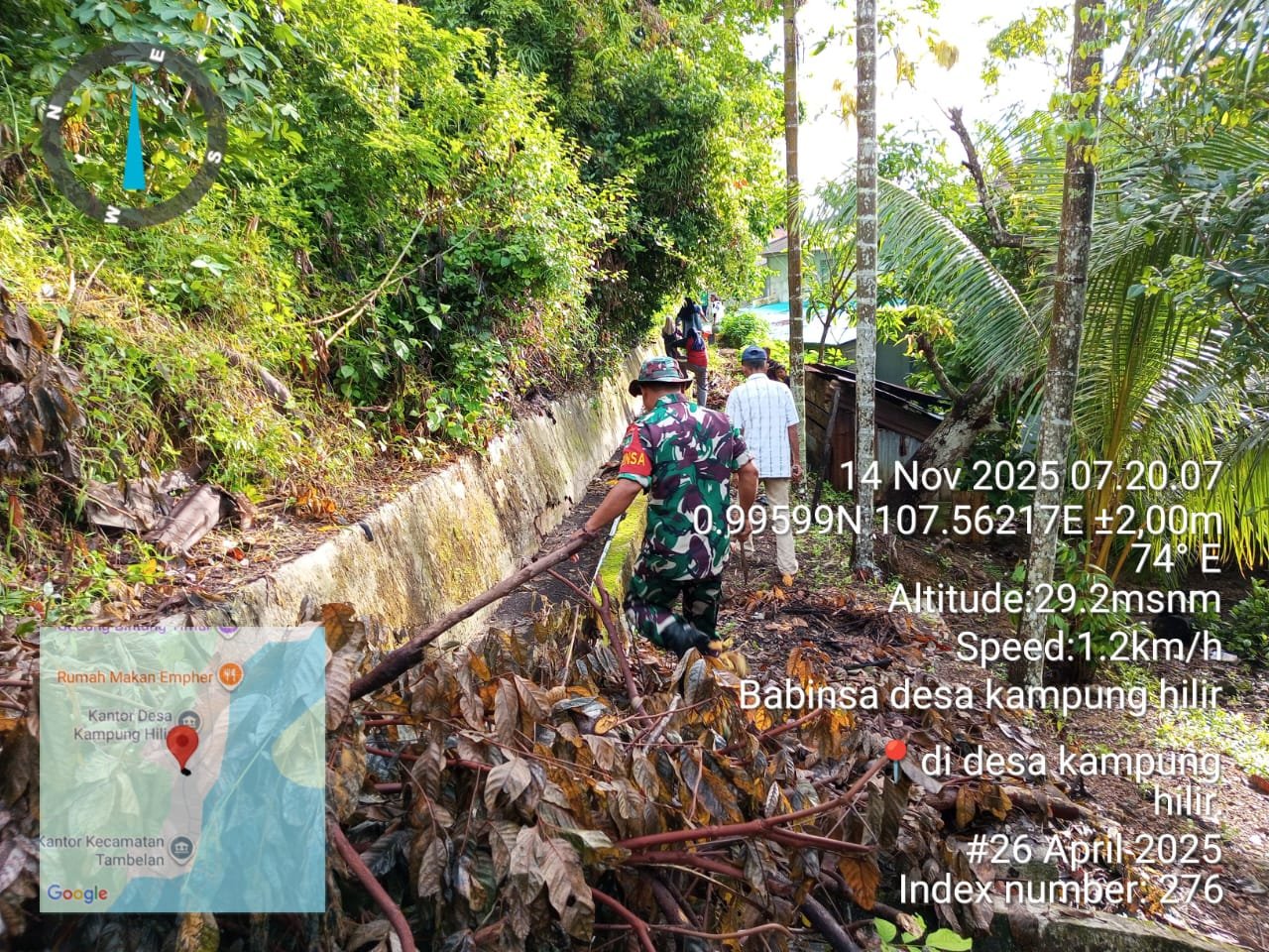 Tambelan – Babinsa Koramil 07/Tambelan Peltu M. Hasanuddin gerakkan masyarakat untuk rutin melaksanakan Gotong Royong (Goro), membersihkan lingkungan dan parit. Kegiatan ini bertujuan untuk mengantisipasi banjir mengingat sudah masuk musim penghujan serta mencegah agar bibit-bibit penyakit malaria tidak berkembang di Desa Kampung Hilir, Jum’at (14/11/2025)