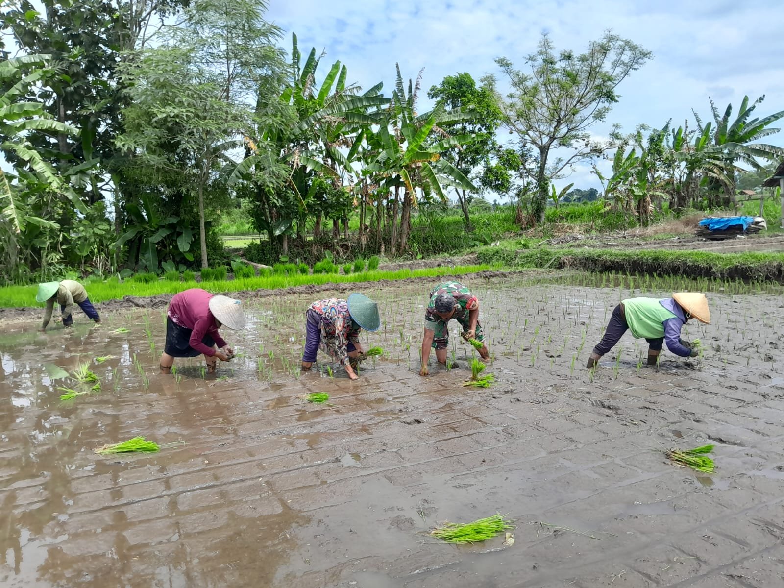 Babinsa Ngoran Dampingi Kelompok Tani Berkah Tani dalam Penanaman Padi Di Nglegok