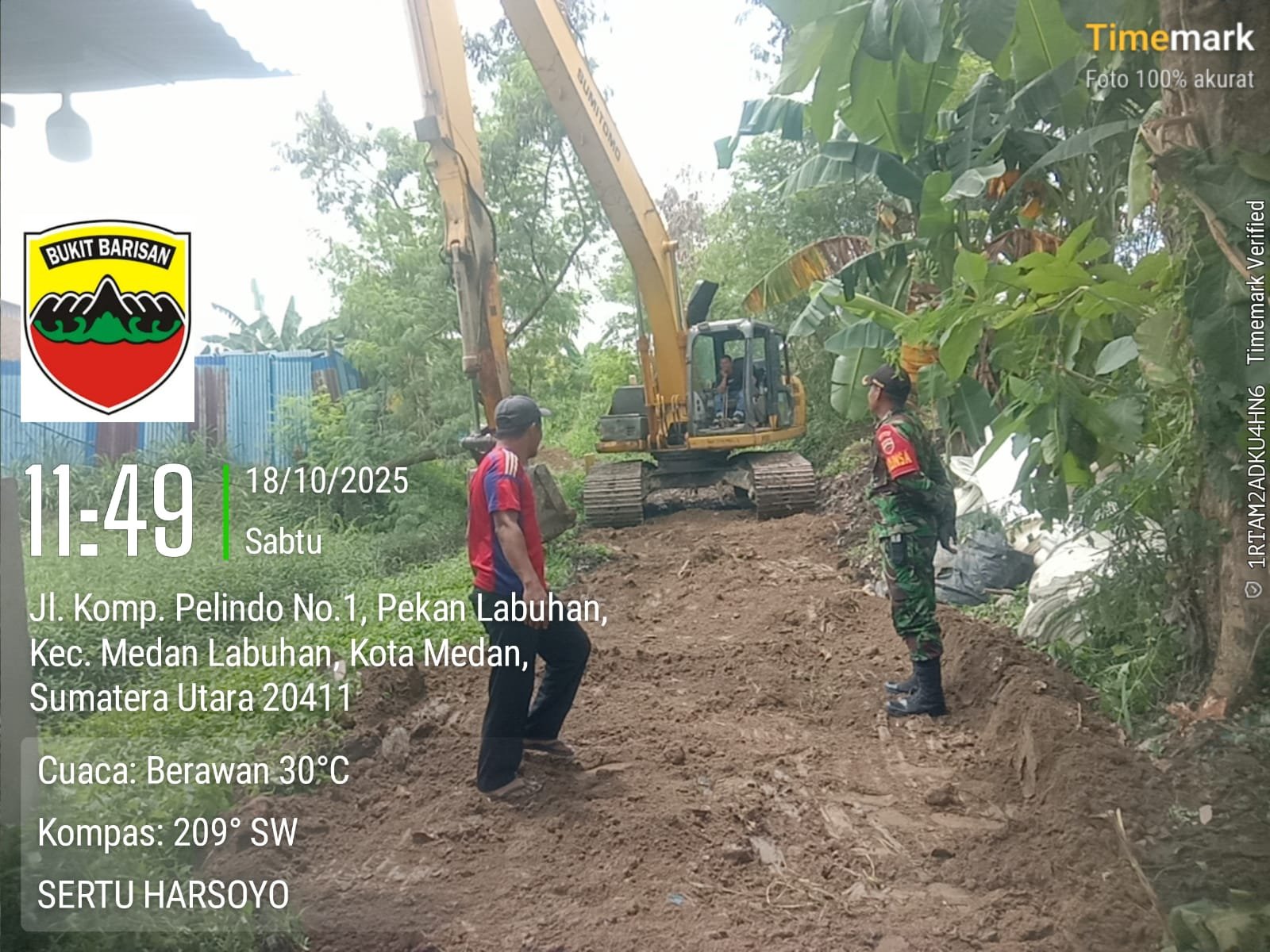 Medan – Kondisi musim penghujan dalam beberapa bulan terakhir. Berdampak meluapnya air di Daerah Aliran Sungai Deli. Hal tersebut menyebabkan tanggul penahan air mengalami abrasi (pengikisan),hingga berpotensi mengalami rubuh dan mengakibatkan banjir di pemukiman warga. Dalam rangka mengantisipasi hal tersebut, Babinsa Sertu Harsoyo melaksanakan monitoring perbaikan tanggul, di Jln Speksi lingkungan 27 kelurahan Pekan Labuhan Kecamatan Medan Labuhan.