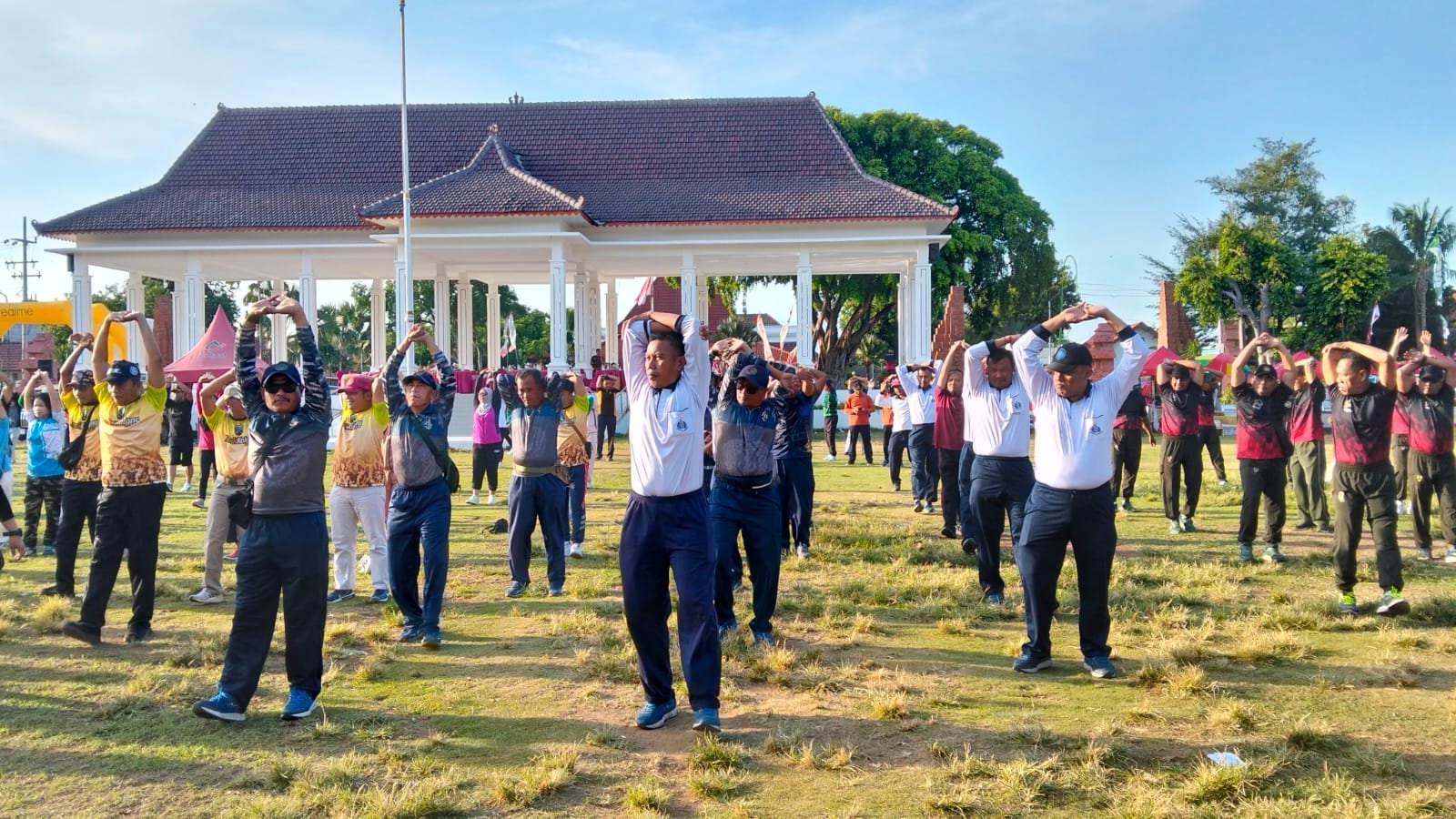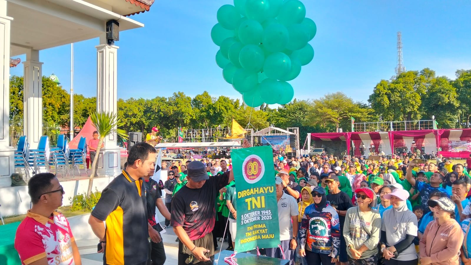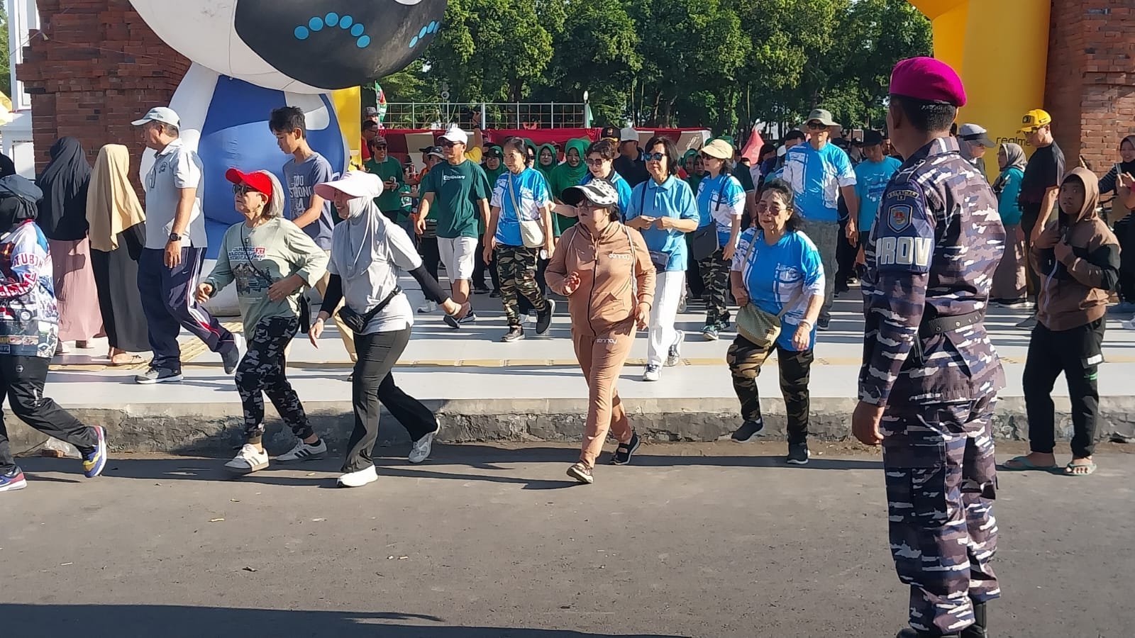 Kemeriahan Jalan Sehat dimulai dengan senam aerobik yang dihadiri ribuan peserta dari berbagai unsur—mulai dari pelajar, ASN, anggota TNI/Polri, hingga masyarakat umum