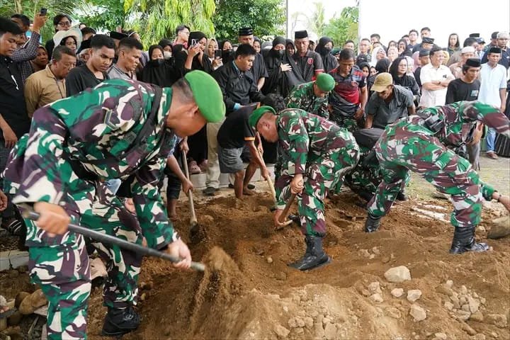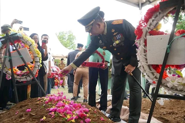 Upacara pemakaman berlangsung khidmat dan penuh haru, dihadiri oleh para pejabat utama kodam, prajurit, persit, unsur Forkopimda Kabupaten Pangkep, dan keluarga besar almarhum, serta masyarakat yang turut memberikan penghormatan terakhir kepada putra terbaik bangsa tersebut.