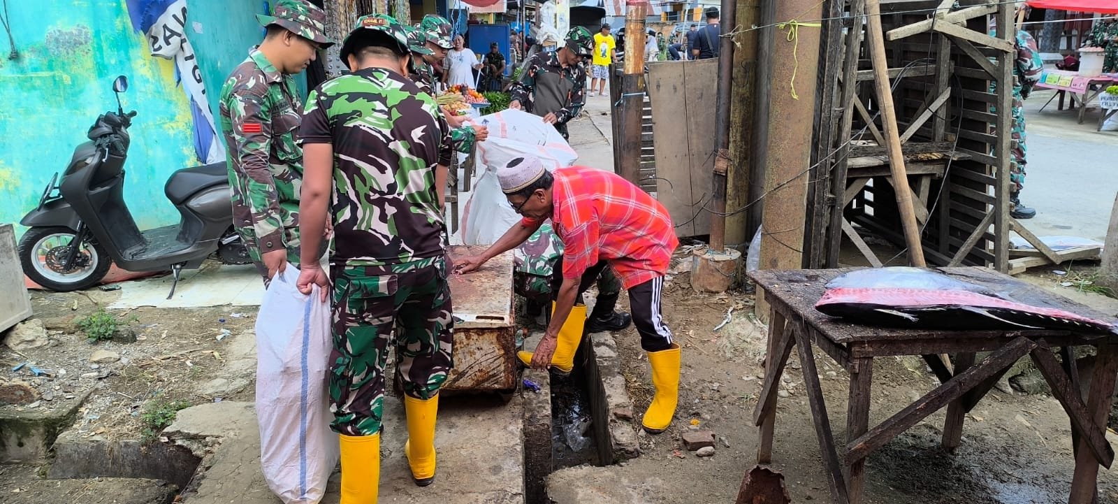 Bersama Lapisan Masyarakat, Kodim 1304/Gorontalo Gelar Karya Bakti Pembersihan Pasar Rakyat Bugis