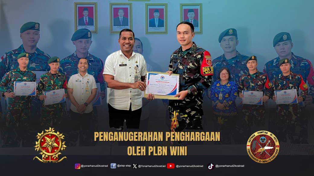 Wini – Kepala Pos Lintas Batas Negara (PLBN) Wini, Reynold Uran, S.STP., M.Sc., memberikan penghargaan kepada Personel Satgas Pamtas RI-RDTL Sektor Barat SSK 3 Pos Wini, yakni Kapten Arh Felix Rizkha Firano, S.Tr.(Han)., M.Sos., Sertu Bahar, Serda Hairul, dan Prada Mufid yang telah menggagalkan upaya penyelundupan BBM oleh WNA di PLBN Wini, Kab. TTU. Rabu (01/10)