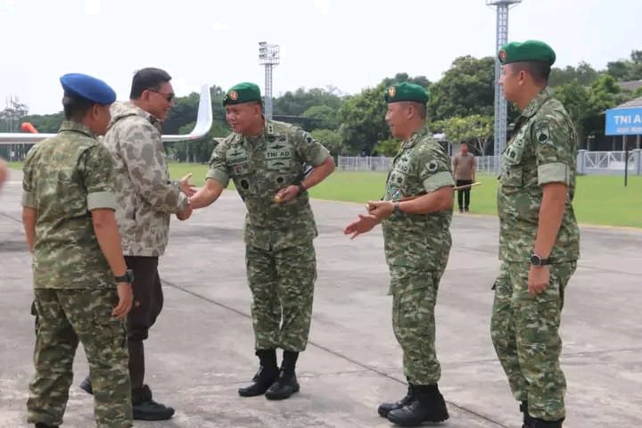 Komandan Kodim 0732/Sleman, Letkol Inf Yusuf Prasetyo,S.Sos,.M.M.menyambut kedatangan Menteri Pertahanan Republik Indonesia (Menhan RI) Jenderal TNI (Horn) Dr. Sjafrie Sjamsoeddin, M.B.A di Baseops Lanud Adi Sucipto Yogyakarta Maguwoharjo Depok Sleman.Minggu (19/10/2025)