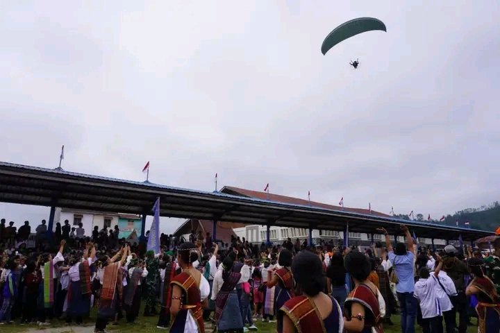 Ribuan masyarakat tumpah ruah memenuhi area lapangan untuk menyaksikan berbagai atraksi udara spektakuler, mulai dari demo paramotor dan trike, hingga flypast pesawat tempur F-16 Fighting Falcon dari Skadron Udara 16 Lanud Roesmin Nurjadin.