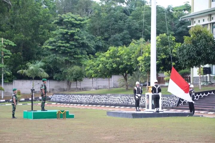 Pangkalpinang – Komandan Korem (Danrem) 045/Gaya Kolonel Inf Nur Wahyudi, S.E., M.H., M.I.POL., Pimpin Upacara 17 Oktober 2025 bertindak langsung sebagai Inspektur Upacara, bertempat di lapangan upacara Makorem 045/Gaya, Jumat (17/10/2025).