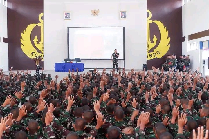 Kegiatan pengarahan ini berlangsung dengan penuh semangat dan diakhiri dengan yel-yel yang menggema di dalam Gedung Pandawa, menambah motivasi dan kebanggaan para siswa dalam menjalani pendidikan dasar militer.