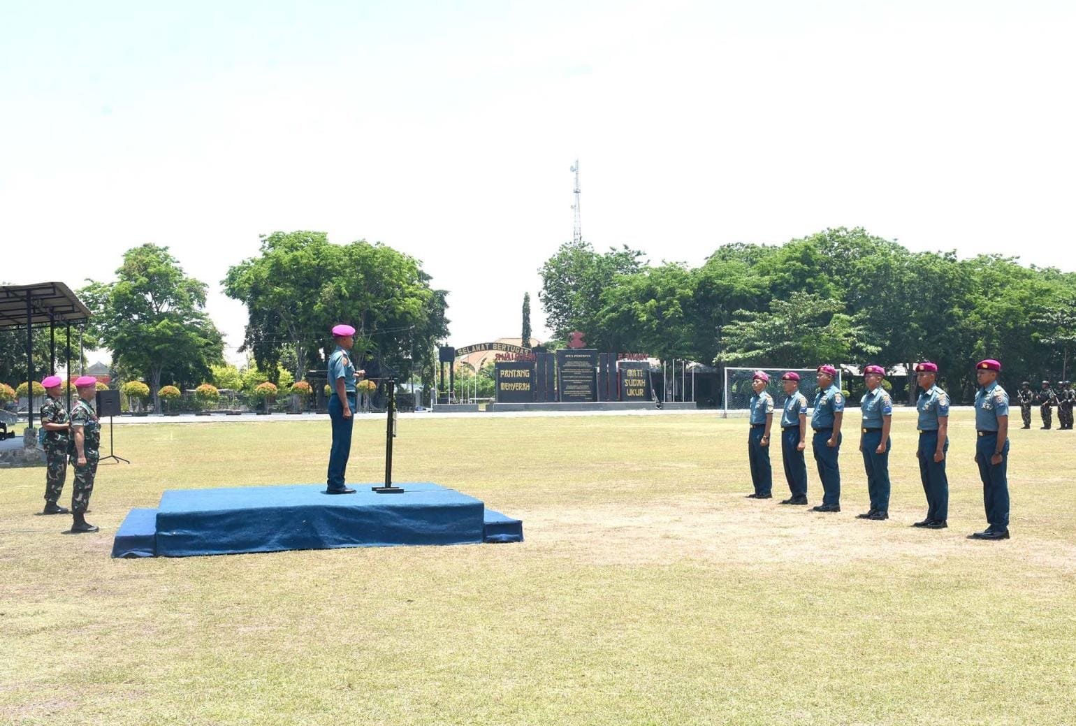 TNI AL, Dispen Kormar (Surabaya). Komandan Batalyon Infanteri 5 Marinir Letkol Marinir Teguh Pristiyanto Dwi S., S.E., M. Tr. Opsla memimpin Upacara Kenaikan Pangkat (Kenkat) Bintara, dan Tamtama Yonif 5 Marinir di Lapangan Apel Kesatrian Marinir Soeroto II, Ujung Semampir, Surabaya, Jawa Timur. Kamis (02/10/2025).