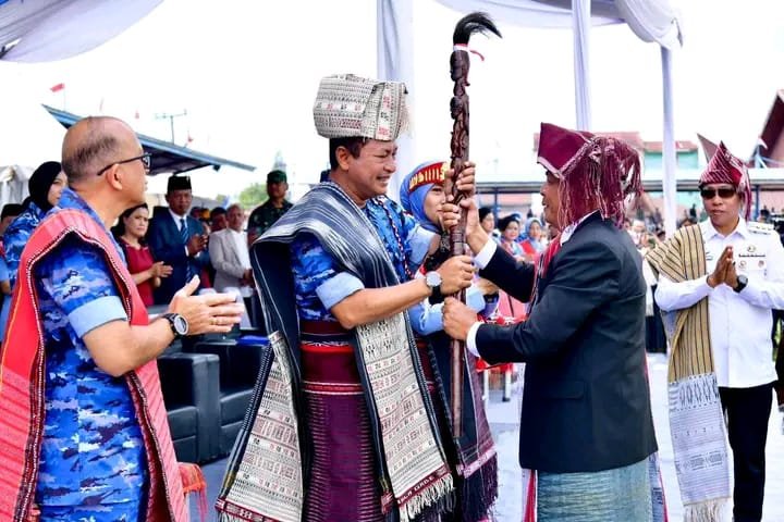 Sebagai bentuk penghormatan adat, Kasau beserta Ketua Umum PIA Ardhya Garini Ny. Isa M. Tonny Harjono menerima seperangkat pakaian adat Batak tertinggi, di antaranya hohopo, sape, bulang, sortali, piso, hajut, tungkot, dan patung bue. Prosesi adat tersebut dipimpin oleh Ketua Adat Tapanuli Utara, Bertho Pasaribu.