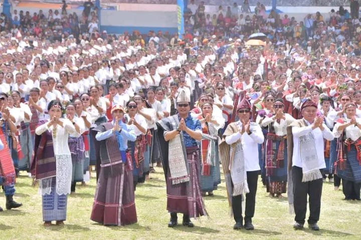 Perayaan Semarak Dirgantara 2025 ditutup dengan tarian monortor kolosal yang melibatkan 150 anggota Tim Penggerak PKK, 100 perangkat daerah, serta tamu undangan lainnya.