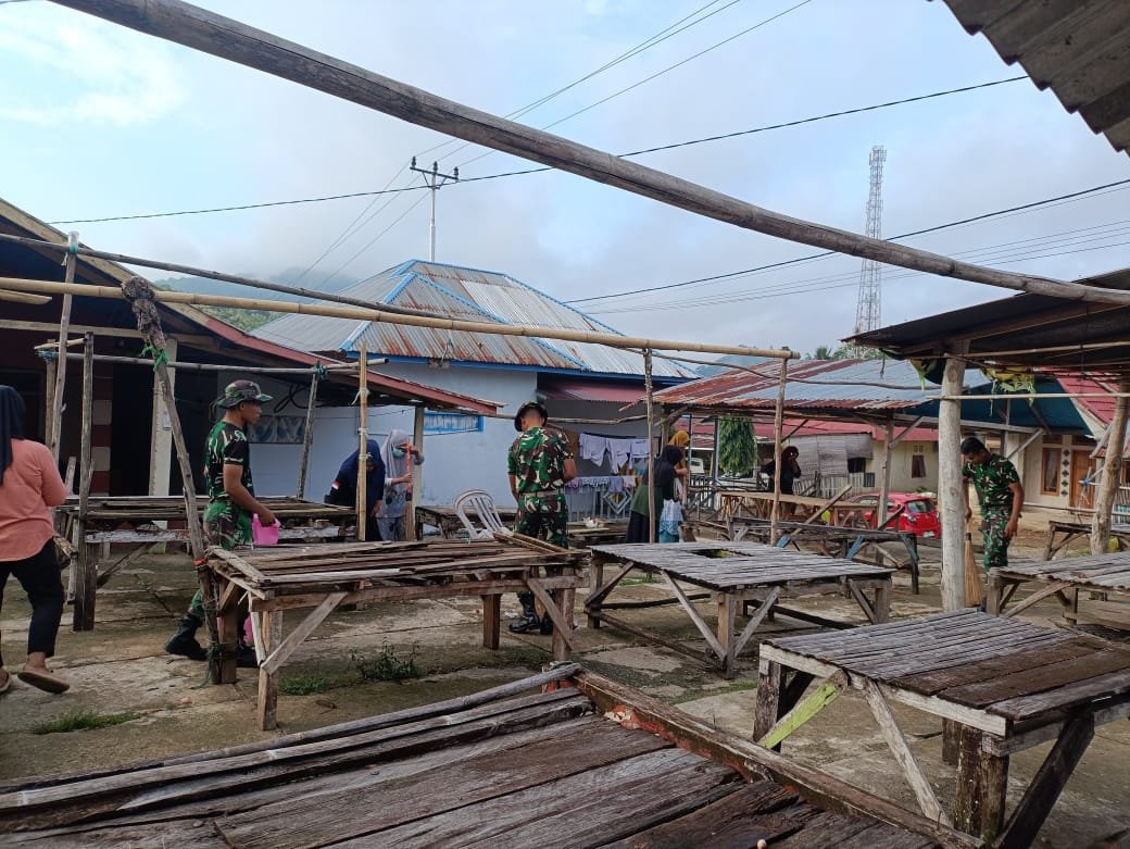 Gelar Karya Bakti, Yonif 715/Motuliato Bersihkan Pasar Sabtu di Desa Lebanu