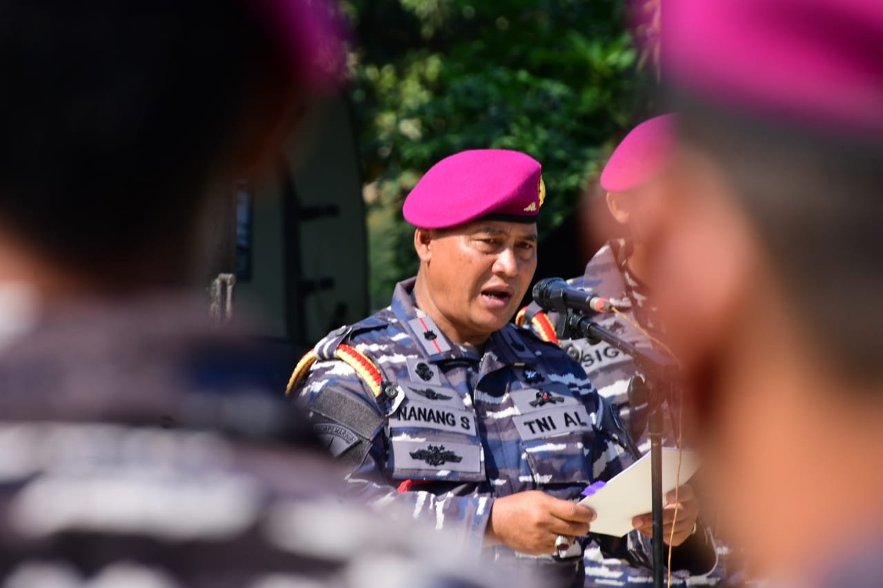 Dispen Kormar (Pasuruan). Komandan Kompi Markas Komando Latihan Marinir (Dankima Kolatmar) Mayor Marinir Nanang Setiawan dengan resmi menyematkan pangkat satu tingkat lebih tinggi dari sebelumnya di lapangan bola voli Mako Kolatmar Grati, Pasuruan, Rabu (15/10/2025).