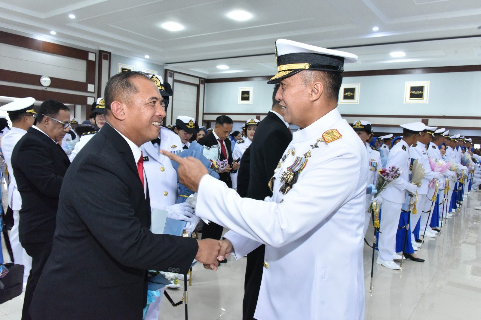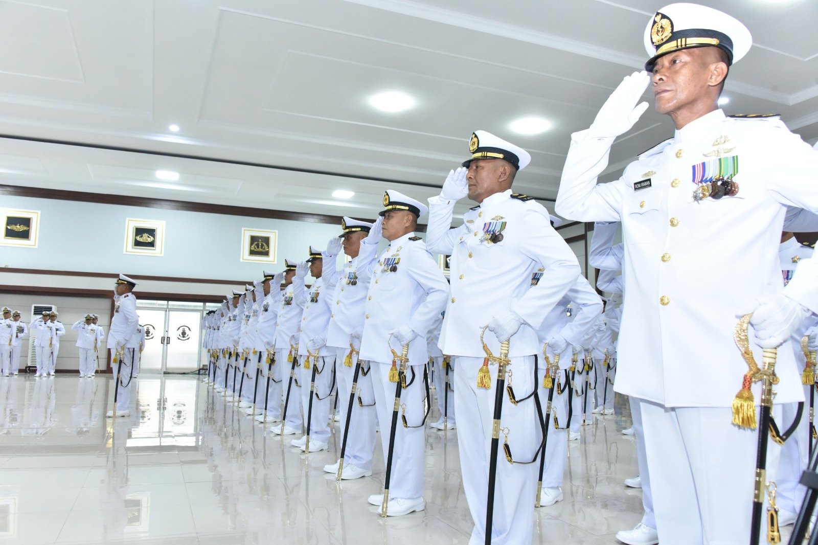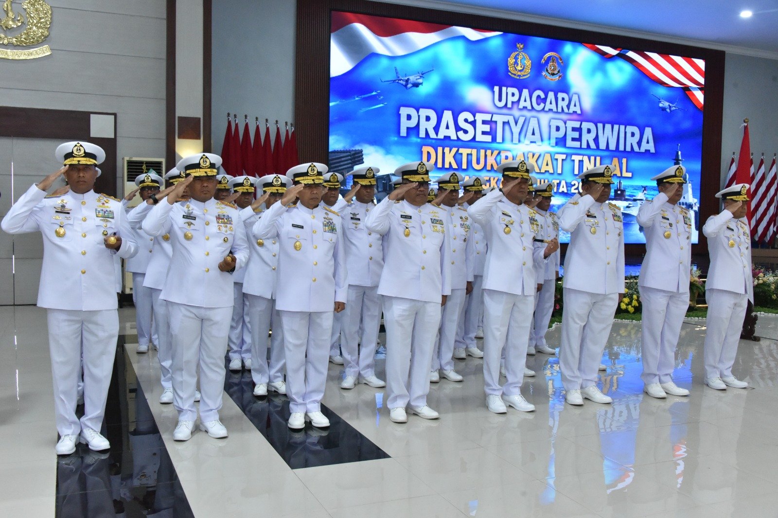 Kepala Dinas Penelitian dan Pengembangan Angkatan Laut (Kadislitbangal) Kolonel Laut (T) Teguh Kadyat Yudharto, S.T., M.MT., menghadiri upacara pelantikan dan penyumpahan Prasetya Perwira (Praspa) 100 siswa Pendidikan Pembentukan Perwira Singkat (Diktukpakat) TNI Angkatan Laut Angkatan III TA 2025 yang dipimpin langsung oleh Komandan Kodiklatal (Dankodiklatal) Letjen TNI Marinir Nur Alamsyah, bertempat di Gedung Mulyadi, Kodiklatal, Bumimoro, Surabaya. Kamis (12/11/2025).