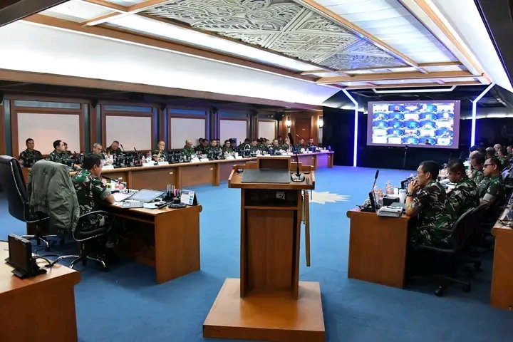 Kepala Staf Angkatan Udara (Kasau) Marsekal TNI M. Tonny Harjono, S.E., M.M., memimpin rapat Evaluasi Pelaksanaan Program dan Anggaran Unit Organisasi TNI Angkatan Udara hingga Triwulan III Tahun Anggaran 2025, di Ruang Rapat Kasau, Mabesau, Cilangkap, Jakarta Timur, Selasa (7/10/2025).