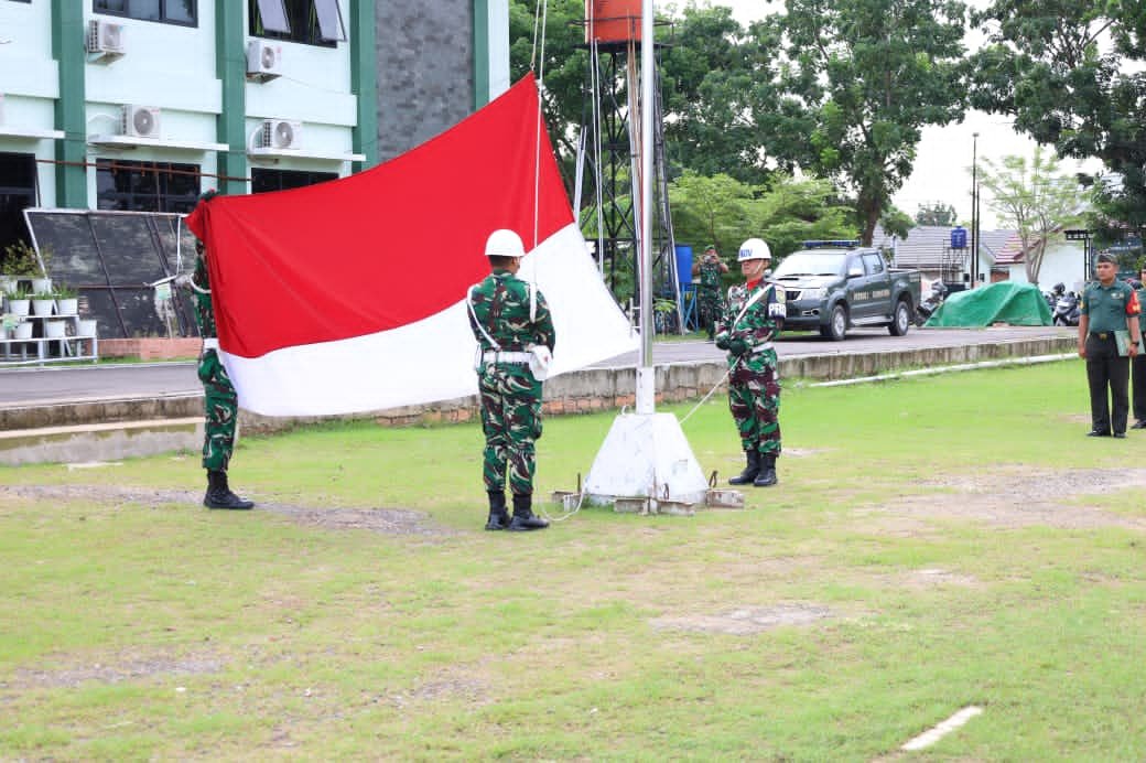 Upacara turut dihadiri Kasdim 0418/Palembang Letkol Inf Deri Septriandi, ST., MM., M.Han., para perwira staf, para Danramil jajaran, segenap prajurit, serta PNS Kodim 0418/Palembang.