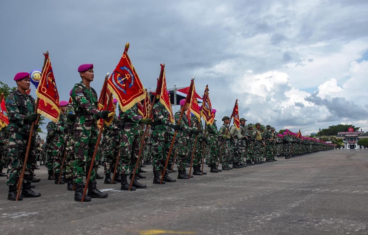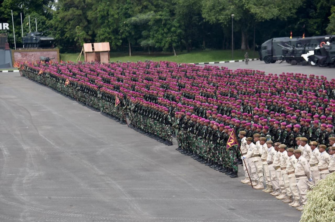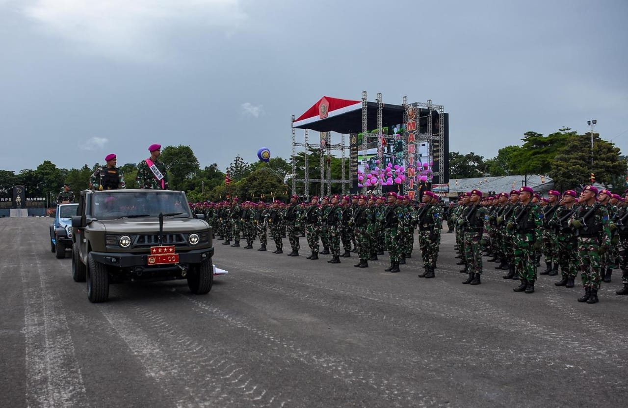 TNI AL, Dispen Kormar (Jakarta). Penuh semangat dan penuh rasa bangga, Komandan Brigade Infanteri 2 Marinir Kolonel Marinir Daniel Tarigan bersama prajurit Brigif 2 Marinir melaksanakan Gladi Upacara peringatan Hari Ulang Tahun (HUT) ke 80 Korps Marinir tahun 2025 dan Pembaretan Panglima TNI Jenderal TNI Agus Subiyanto menjadi warga kehormatan Korps Marinir di Lapangan Apel Kesatrian Marinir Hartono Cilandak, Jakarta Selatan. Kamis (13/11/2025).