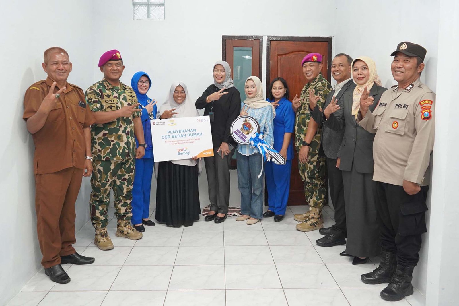 TNI AL, Dispen Kormar (Sidoarjo). Komandan Brigif 2 Marinir Kolonel Marinir Daniel Tarigan menghadiri Vicon peresmian bedah rumah serentak dalam rangka memperingati Hari Ulang Tahun (HUT Ke 80 Korps Marinir tahun 2025 di Perum Mentari Bumi Sejahtera Jl. Melati 5 Blok AS No. 31 Candi, Sidoarjo, Jawa Timur. Senin (10/11/2025).