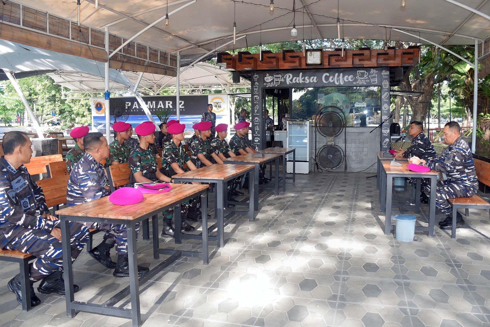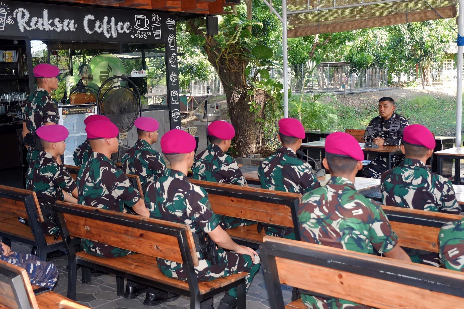 Dispen Kormar, TNI AL (Sidoarjo). Komandan Pasmar 2, Mayjen TNI (Mar) Dr. Oni Junianto memberikan Santiaji kepada para Perwira Remaja Korps Marinir TNI AL Angkatan 70, di Raksa Coffee Kesatrian Marinir Moekijat, Gedangan, Sidoarjo. Senin (13/10/2025).