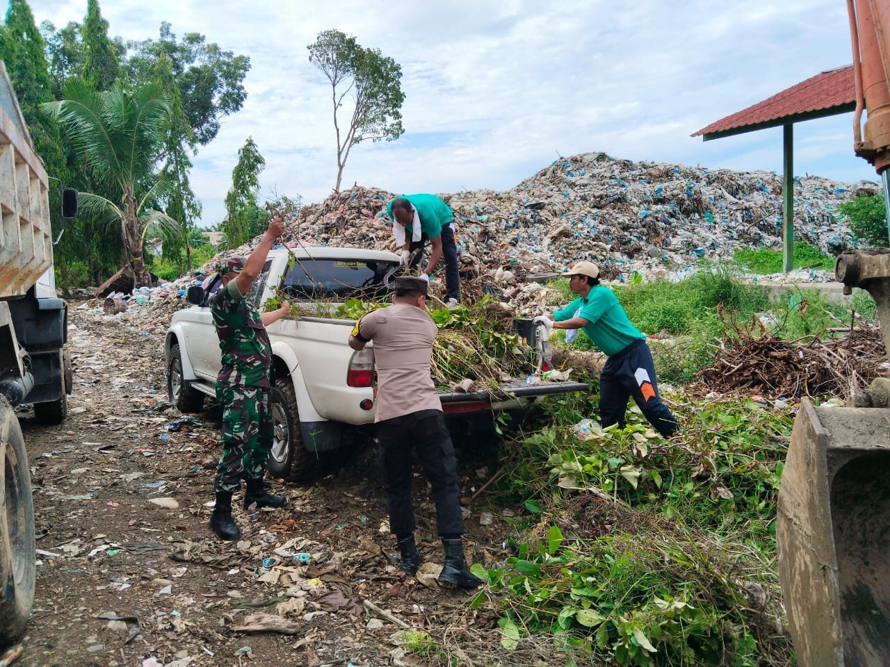 Berbaur dengan masyarakat dan pemuda, dua Babinsa kompak bahu membahu membersihkan lingkungan dari sampah plastik dan melansirnya langsung ke tempat pembuangan akhir di kawasan Geulima Jaya.
