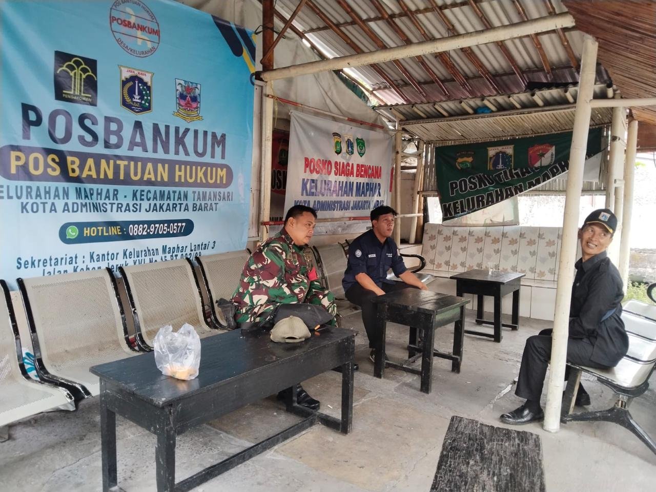 Kodam Jaya, Jakarta Barat _ Bertempat di saung depan Kelurahan Maphar Jalan Kebon Jeruk XIV, RT. 002, RW. 08, Kelurahan Maphar Kecamatan Tamansari Jakarta Barat pada Selasa, 21 Oktober 2025, Babinsa Pelda Ery Hendrawan melakukan Komunikasi Sosial (Komsos).