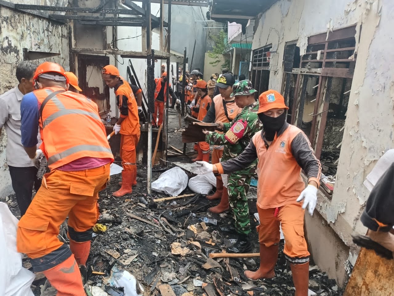 Koramil 02/TB Kodim 0503/JB Turun Tangan Bersihkan Puing Pasca Kebakaran di Angke