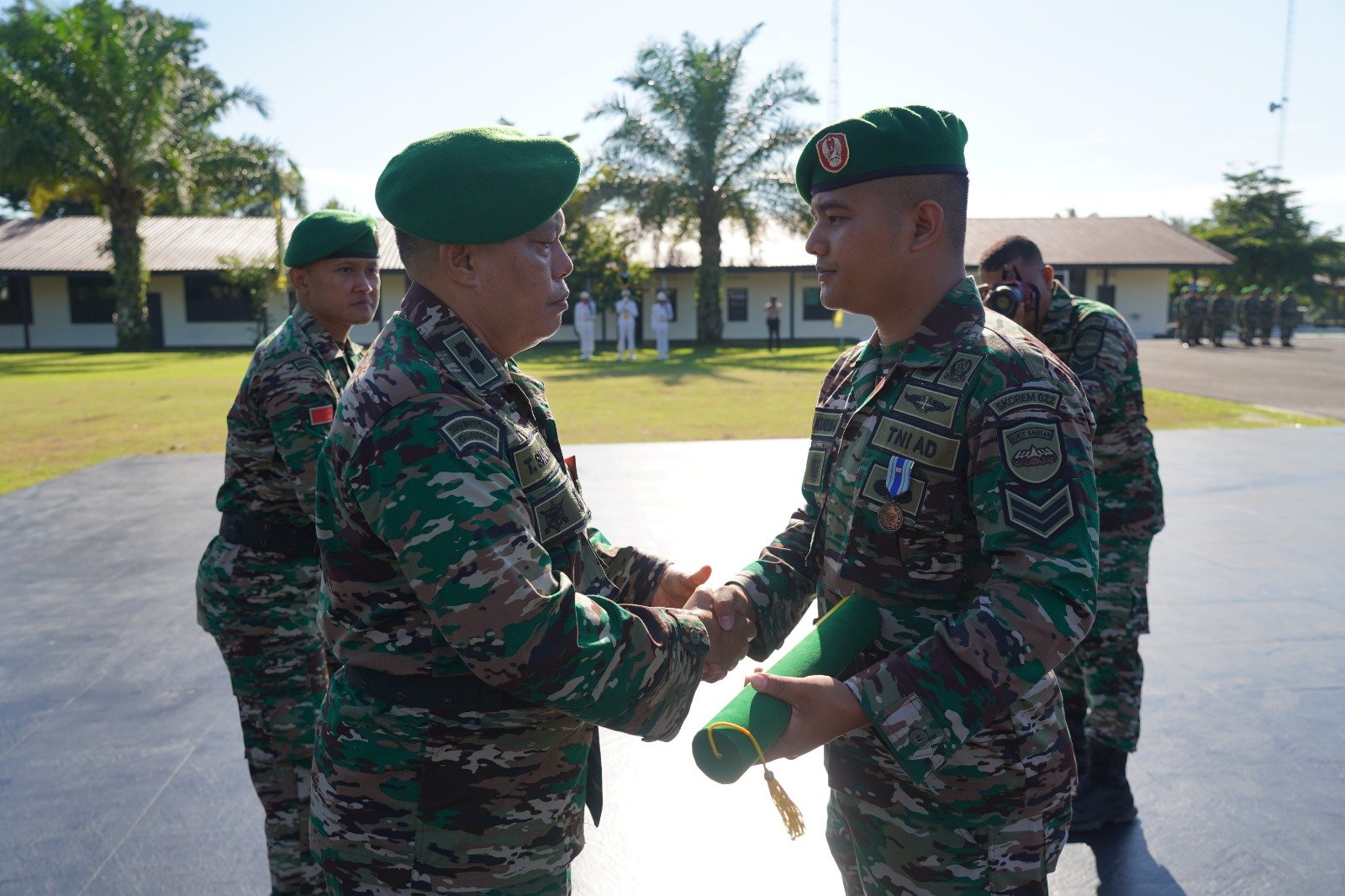 Di akhir kegiatan dilanjutkan foto bersama dan Nobar HUT TNI Secara Vidcon di aula Pantai Timur