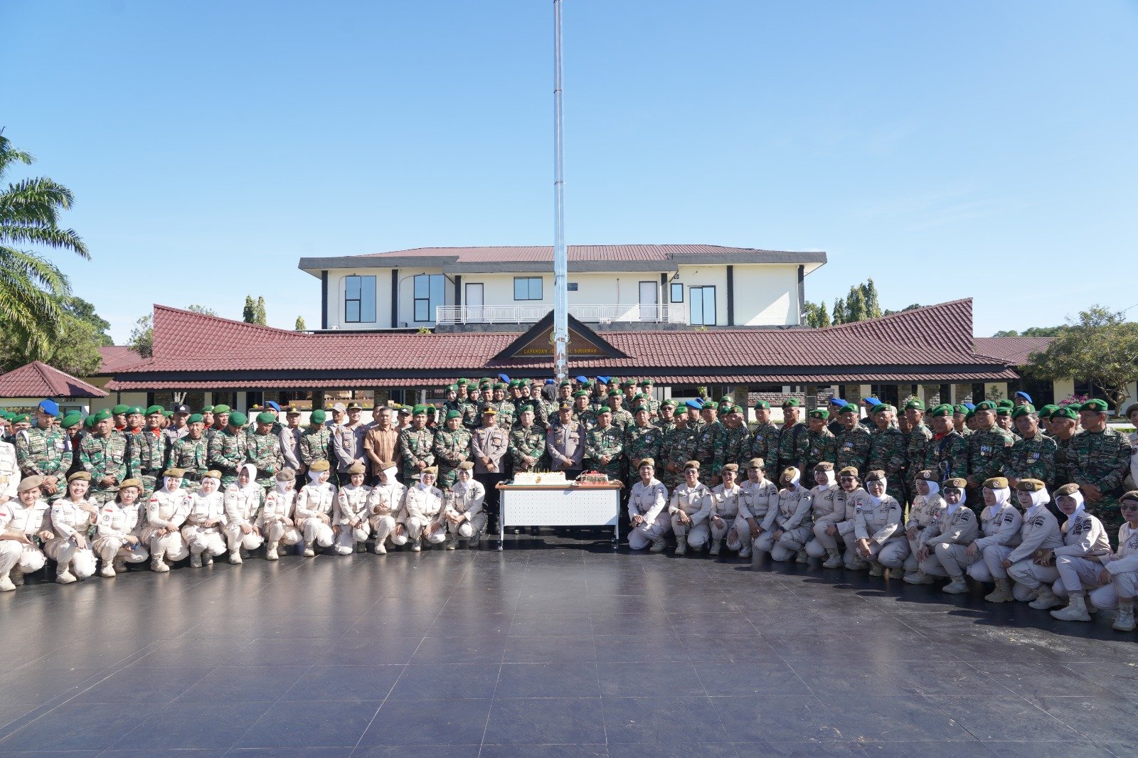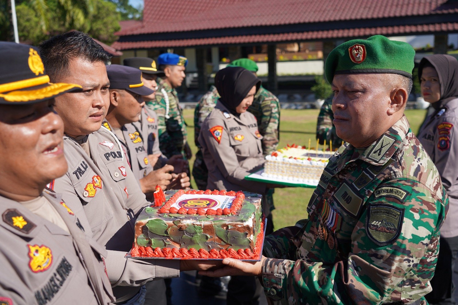 Usai upacara, Kapenrem 022/PT bersama jajaran menerima surprise dari Polres Siantar dan Polres Simalungun serta Brimob Pematangsiantar sebuah kue ulang Kedatangan perwakilan Polres san Brimob ini dalam rangka mengucapkan Dirgahayu TNI ke-80.