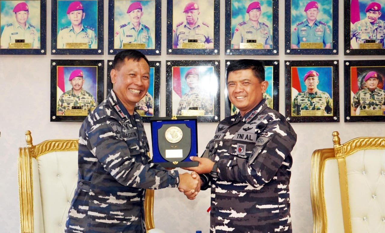 Dispen Kormar (Pasuruan). Komandan Komando Latihan Marinir (Dankolatmar) Brigjen TNI (Mar) Agus Dwi Laksana Putra laksanakan kunjungan kerja kepada Komandan Pasmar 2 Mayjen TNI (Mar) Dr. Oni Junianto, S.A.P., M.M., M.Tr.Opsla., di Lobby Mako Pasmar 2, Kesatrian Marinir Moekijat, Gedangan, Sidoarjo, Kamis (09/10/2025).