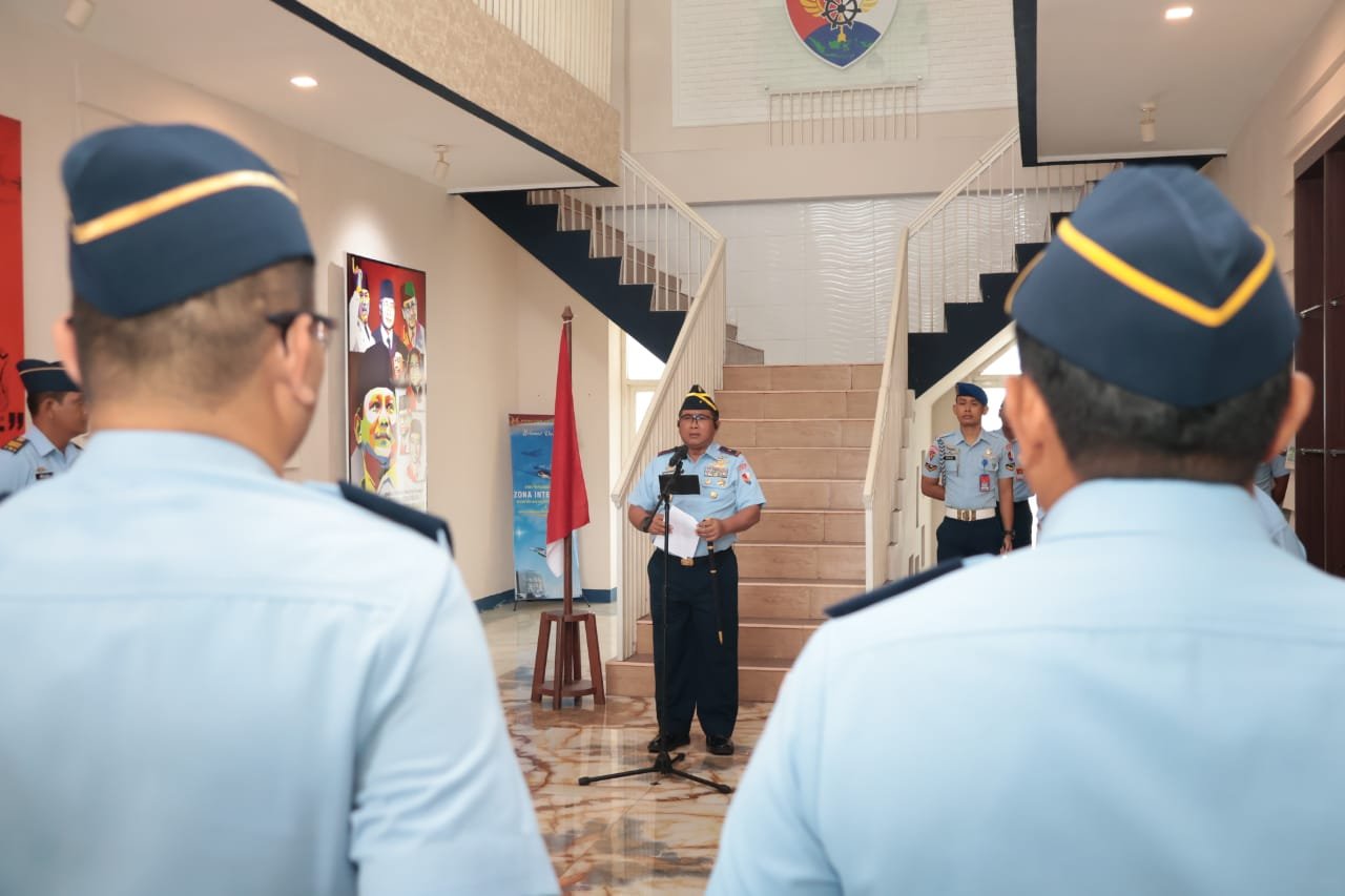 MANADO, LANUD SAM RATULANGI. Lanud Sam Ratulangi melaksanakan upacara Laporan Korps Kenaikan Pangkat Perwira Periode 1 Oktober 2024, bertempat di Lobby Mako Lanud Sam Ratulangi, Manado. Rabu (8/10/2025).