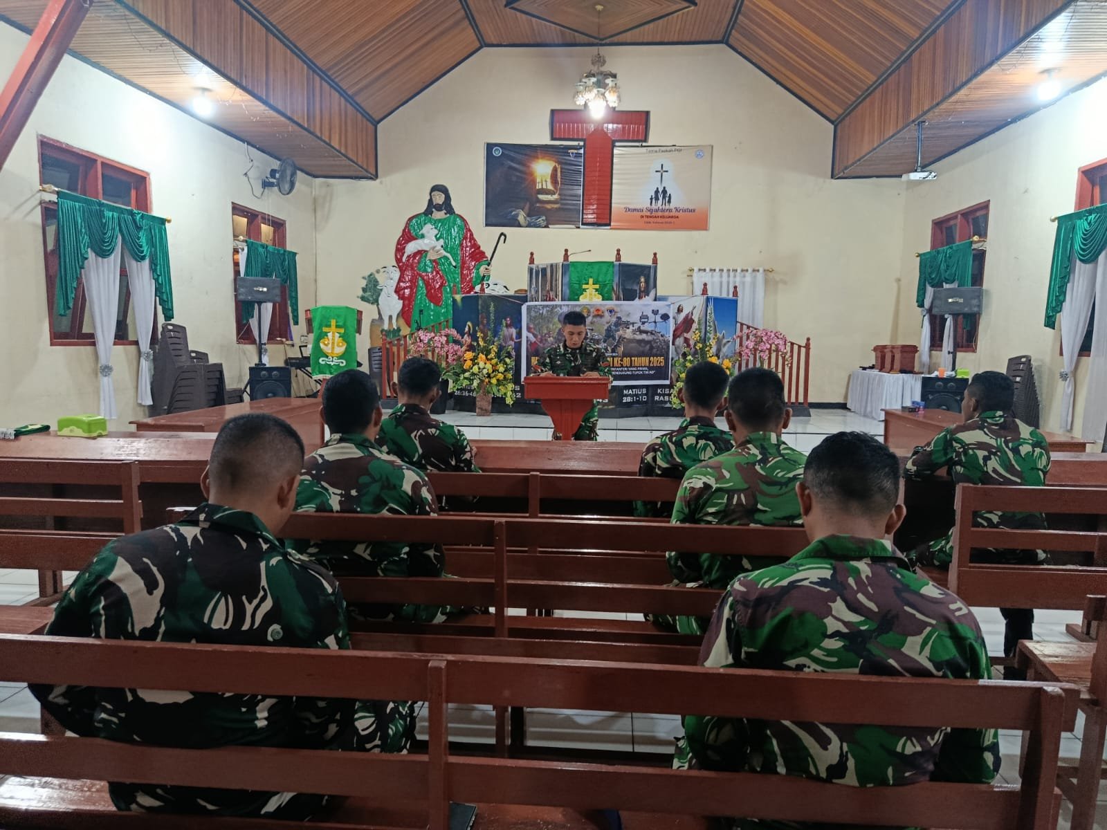 Kegiatan berlanjut dengan Doa Bersama lintas agama, dilaksanakan serentak oleh seluruh jajaran Kompi Yonif 713/ST. Dalam suasana khidmat, para prajurit memanjatkan rasa syukur dan harapan agar Korps Infanteri senantiasa diberi kekuatan, keberanian, dan semangat juang untuk mengabdi kepada bangsa dan negara.