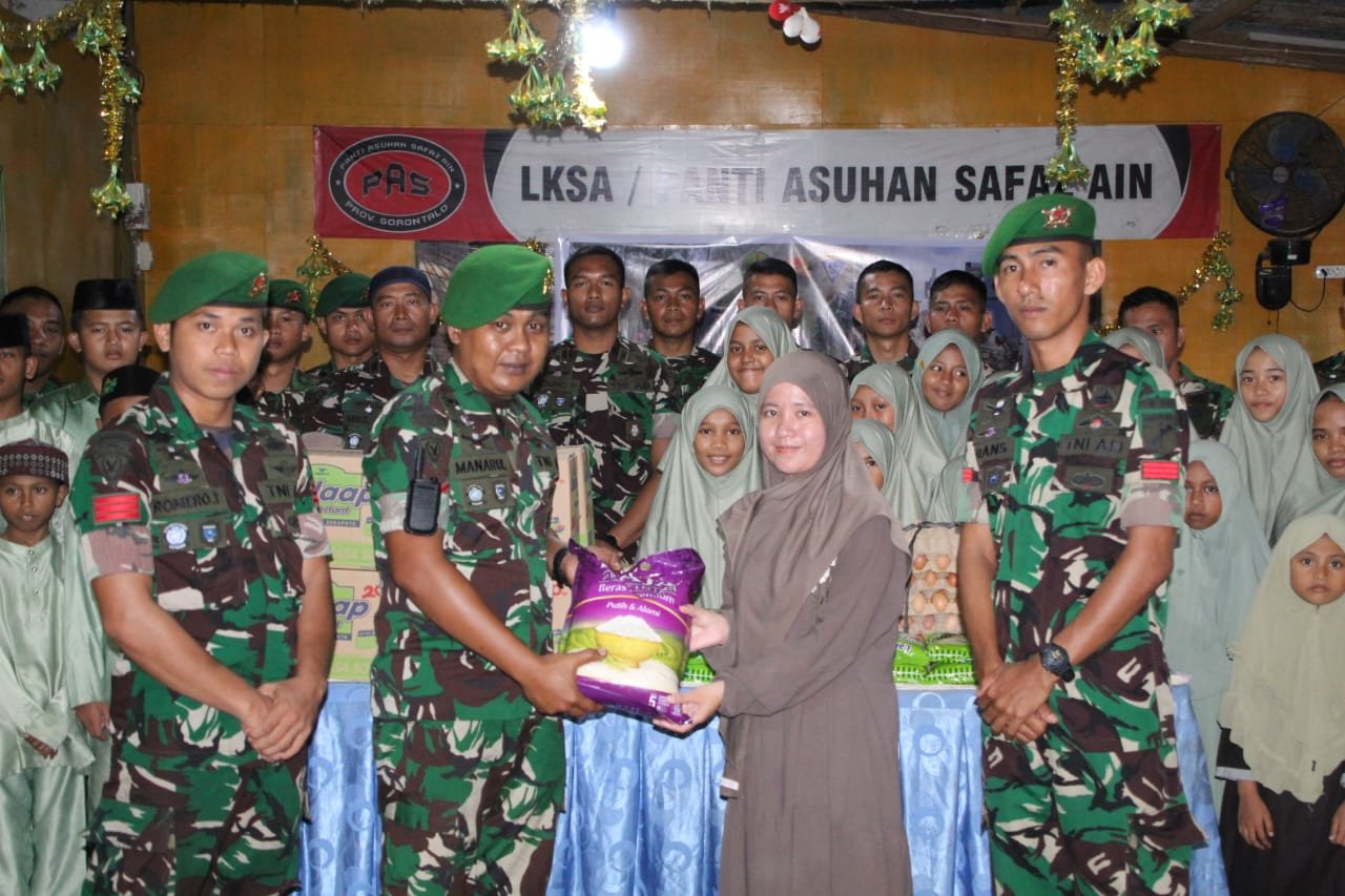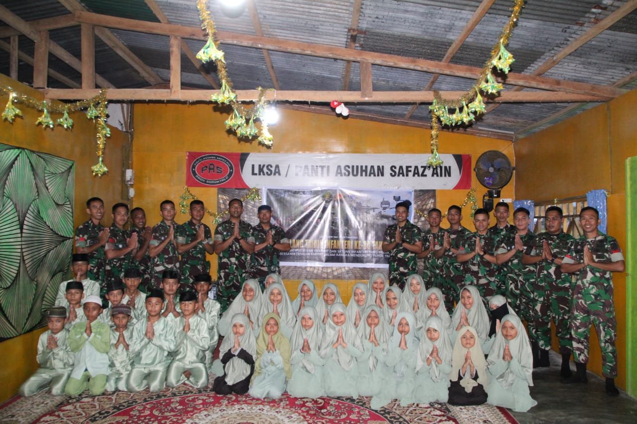 Rangkaian kegiatan dimulai dengan Bakti Sosial di Panti Asuhan Safaz’Ain, di mana para prajurit Yonif 713/ST berbagi kebahagiaan dan rezeki dengan anak-anak asuh. Tindakan sederhana namun bermakna ini menggambarkan wajah humanis prajurit Infanteri yang tak hanya tangguh di medan tugas, tetapi juga memiliki kepedulian sosial yang tinggi.