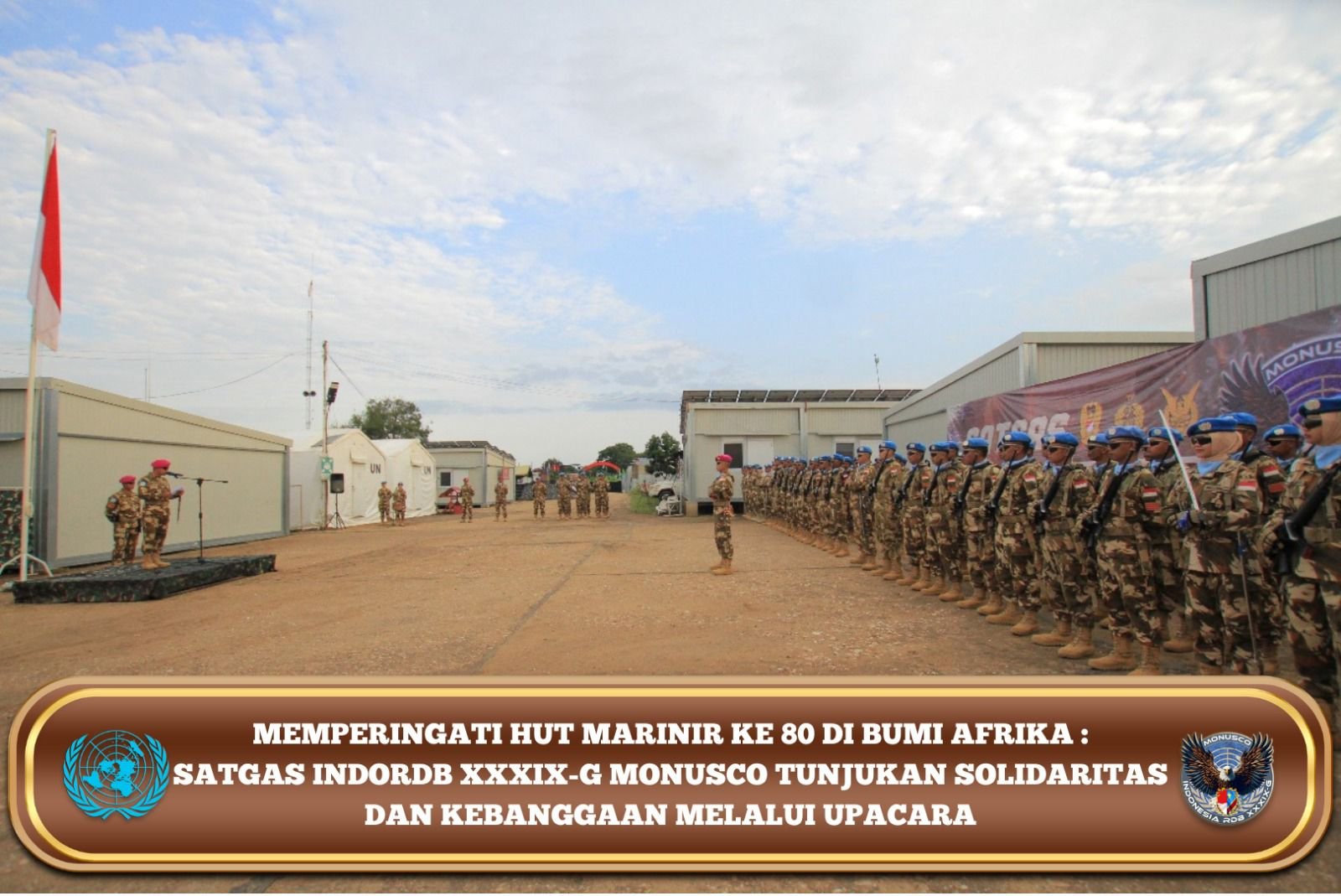 OKEBUNG |Satgas INDO RDB XXXIX-G MONUSCO memperingati Hari Ulang Tahun ke-80 Korps Marinir di Bumi Afrika dengan penuh khidmat dan kebanggaan. Upacara yang digelar di Garuda Super Camp, Bunia, Republik Demokratik Kongo. Senin (17/11/2025).