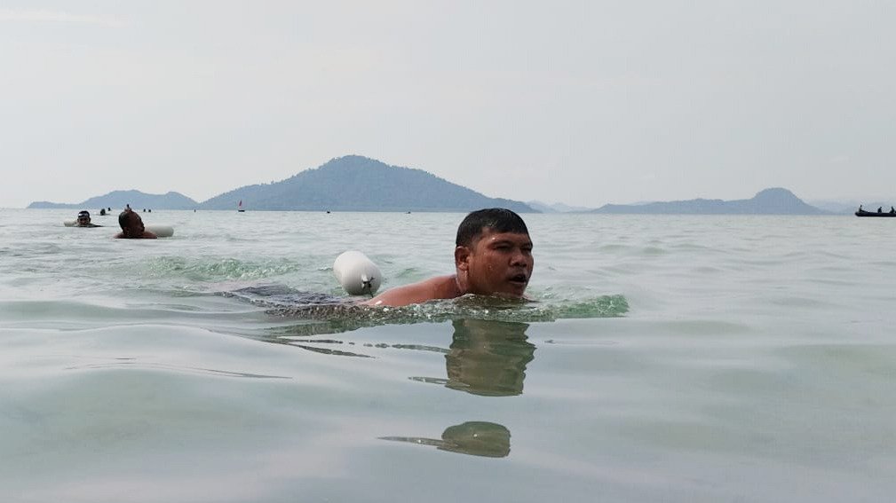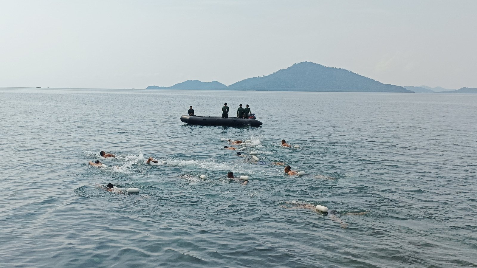 TNI AL, Dispen Kormar (Lampung). Prajurit Puslatpurmar-8 Teluk Ratai Laksanakan Latihan Perorangan Dasar (LPD) Triwulan IV tahun 2025. Dimana materi yang dilaksanakan adalah materi renang laut sejauh 1000 meter yang di laksanakan di Pantai Puslatpurmar-8 Teluk Ratai Lampung. Selasa (21/10/2025).