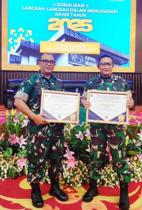 Manado, 10 Oktober 2025 – Dua satuan jajaran Kodam XIII/Merdeka kembali menorehkan prestasi membanggakan dalam pengelolaan keuangan negara. Peralatan Kodam XIII/Merdeka (Paldam XIII/Mdk) dan Komunikasi dan Elektronika Kodam XIII/Merdeka (Komlekdam XIII/Mdk) berhasil meraih penghargaan Indikator Kinerja Pelaksanaan Anggaran (IKPA) terbaik dari Kantor Pelayanan Perbendaharaan Negara (KPPN) Tipe A1 Manado.