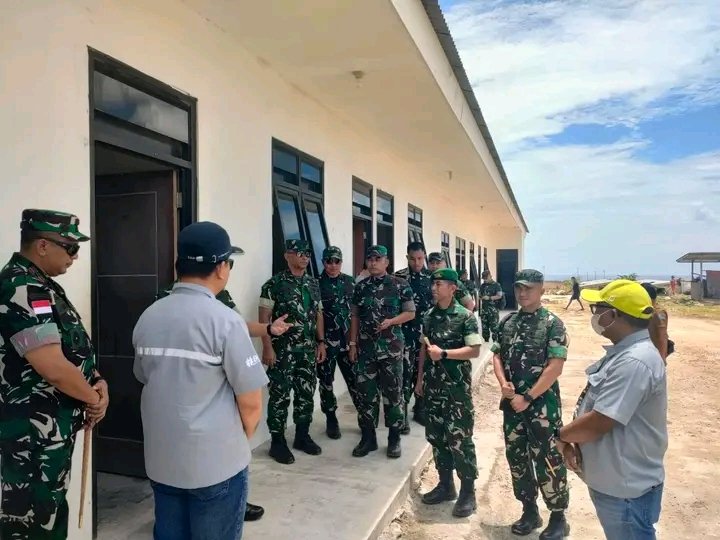 Peninjauan diakhiri dengan pengecekan Marshaling Area yang disiapkan sebagai tempat penampungan sementara bagi kurang lebih 500 personel, dengan dukungan enam unit mes yang akan digunakan hingga pembangunan Batalyon Teritorial selesai dilaksanakan. (Kodim 1601/ST).