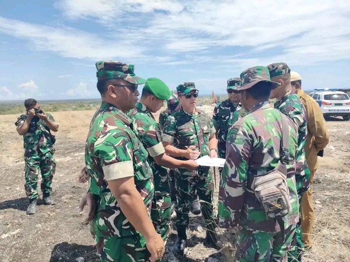 NTT- Sumba Timur. Komandan Kodim 1601/Sumba Timur,Letkol Inf Dobby Noviyanto S.,S.E , mendampingi Pangdam IX/Udayana Mayjen TNI Piek Budyakto, Danrem 161/Wira Sakti Brigjen TNI Hendro Cahyono beserta rombongan melakukan peninjauan lokasi pembangunan Yonif TP 876/Pala Tama di Desa Kadumbul, Kecamatan Pandawai, Kabupaten Sumba Timur, Selasa (14/10/2025).