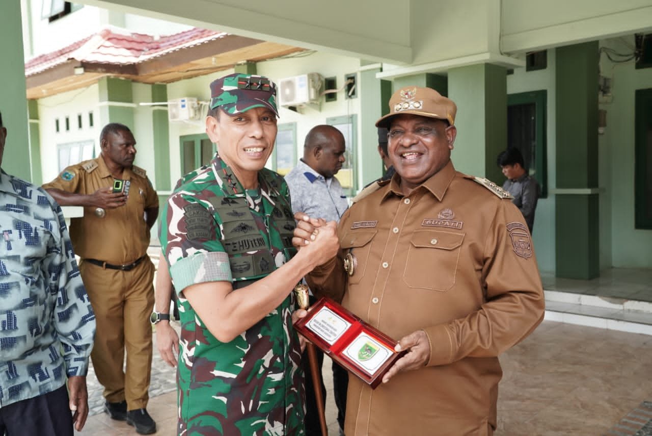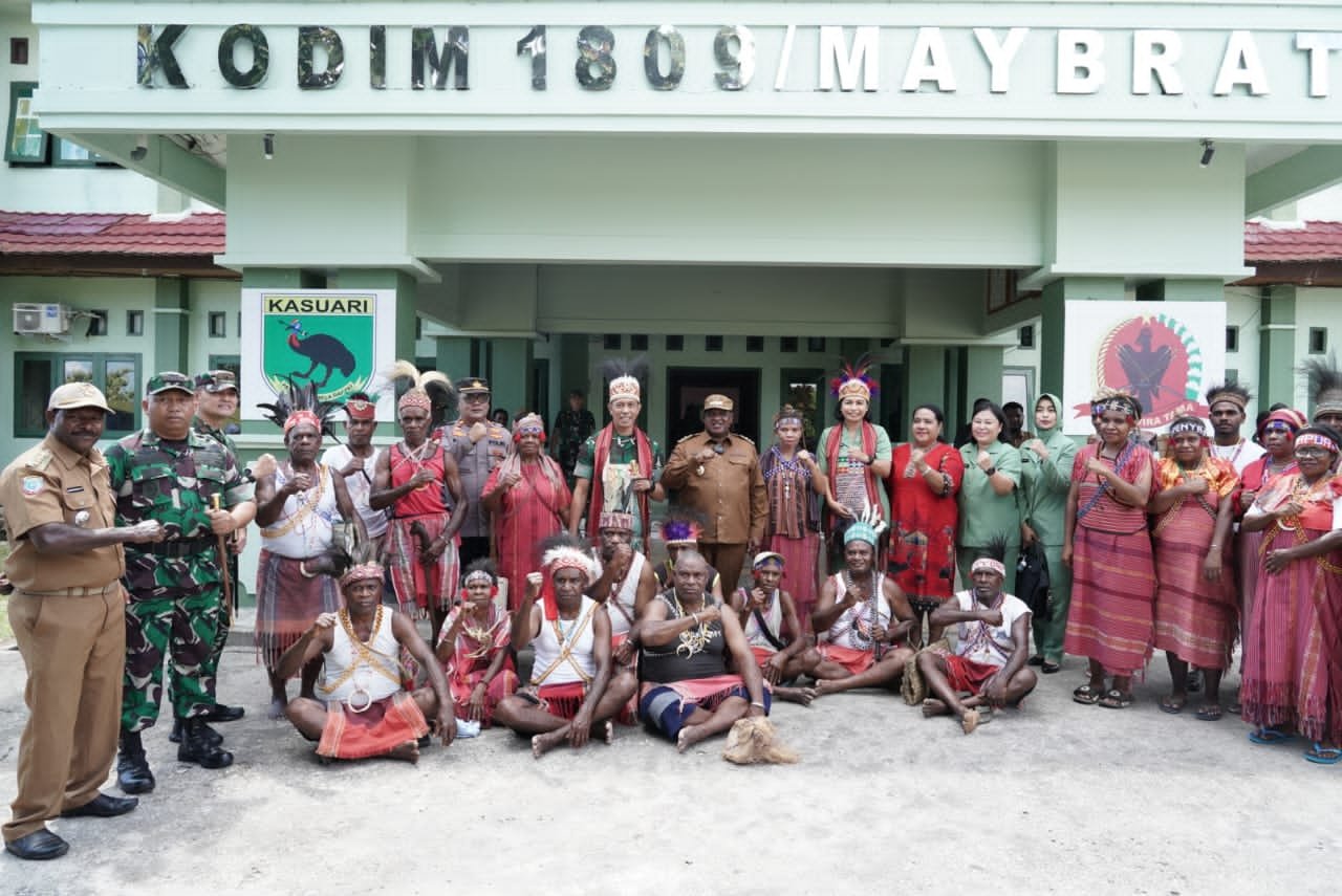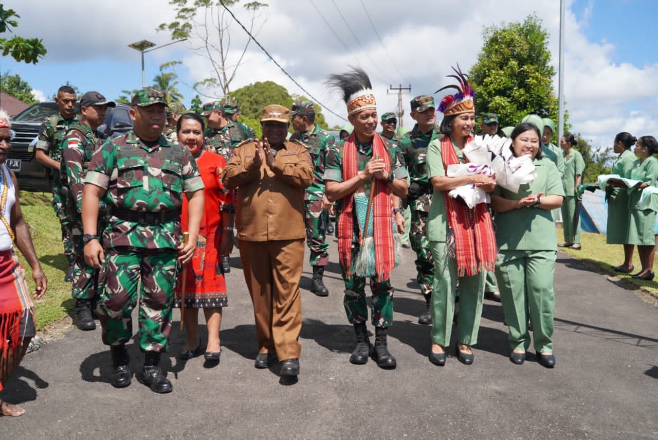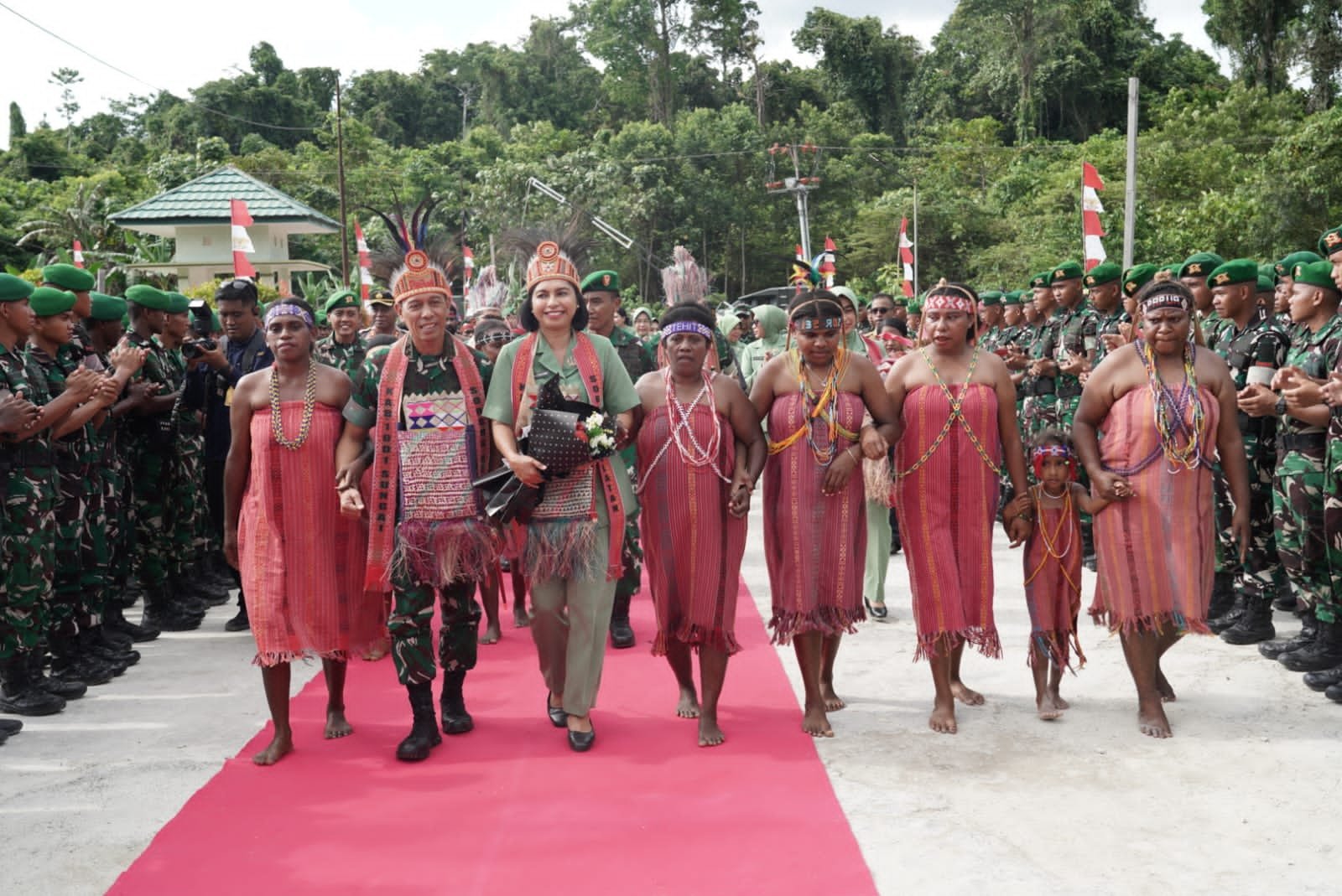 Kunjungan kerja ini turut dimeriahkan dengan tarian adat Papua yang menjadi simbol sambutan hangat masyarakat kepada Pangdam dan rombongan.