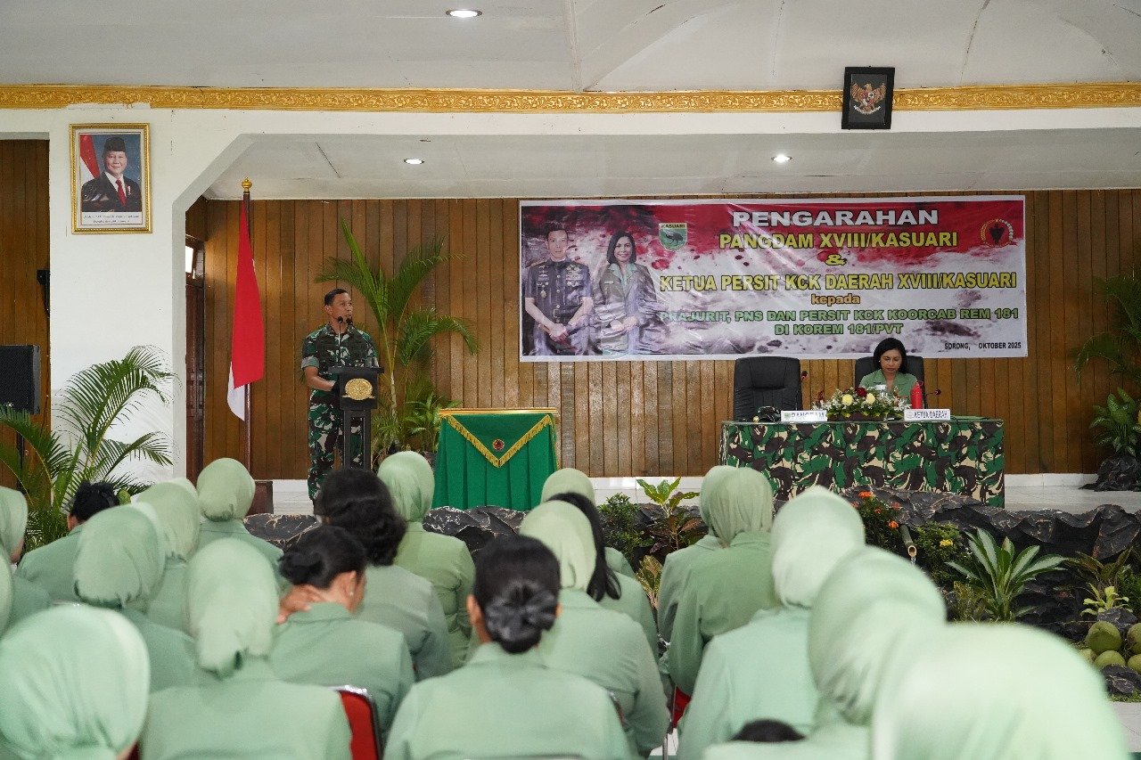 Di saat pengarahan kepada keluarga besar Korem 181/PVT, Pangdam menekankan pentingnya kesiapan menghadapi perubahan nasional serta tuntutan baru seiring dengan program-program unggulan dari Presiden.