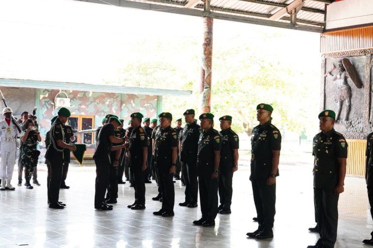 Pangdam XXIV/MT Mayjen TNI Lucky Avianto, S.I.P., M.Si, memimpin acara pelantikan jabatan dan tradisi korps perwira Kodam XXIV/MT di Aula L.B Moerdani, Makodam XXIV/MT, Merauke, Papua Selatan, Senin (22/9).