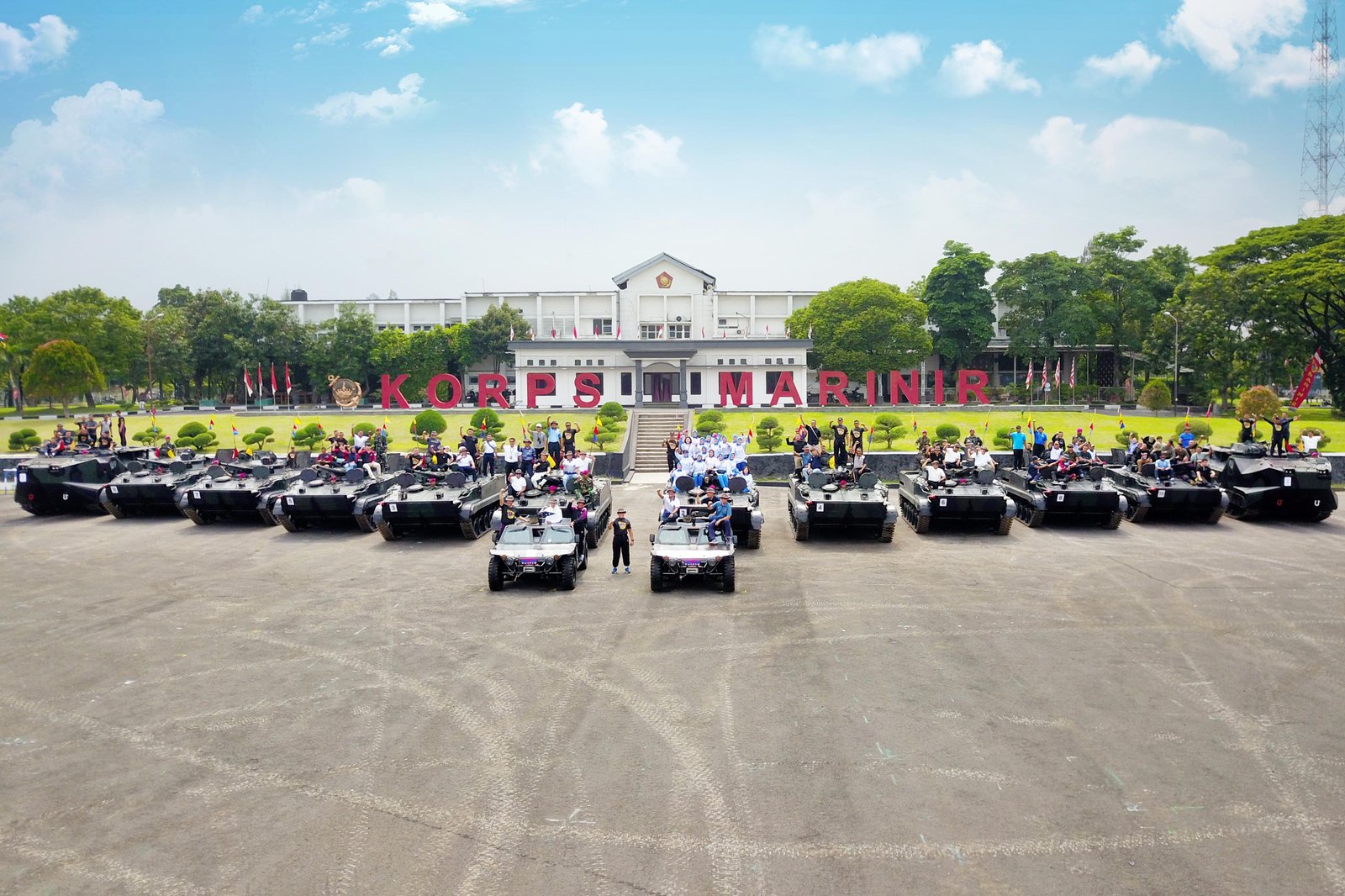 Inaugurasi Pasmar 2 sebagai rangkaian kegiatan HUT ke 80 Korps Marinir, dihadiri oleh Gubernur Jawa Timur Dr. (H.C.) Khofifah Indar Parawansa, M.Si, Komandan Kodiklatal Letjen TNI (Mar) Nur Alamsyah, S.E., M.M., M.Tr (Han), Pangkoarmada II Laksda TNI I Gusti Putu Alit Jaya, S.E., M.Si, Forkopimda Jawa Timur dan Rekan-rekan dari berbagai kalangan.